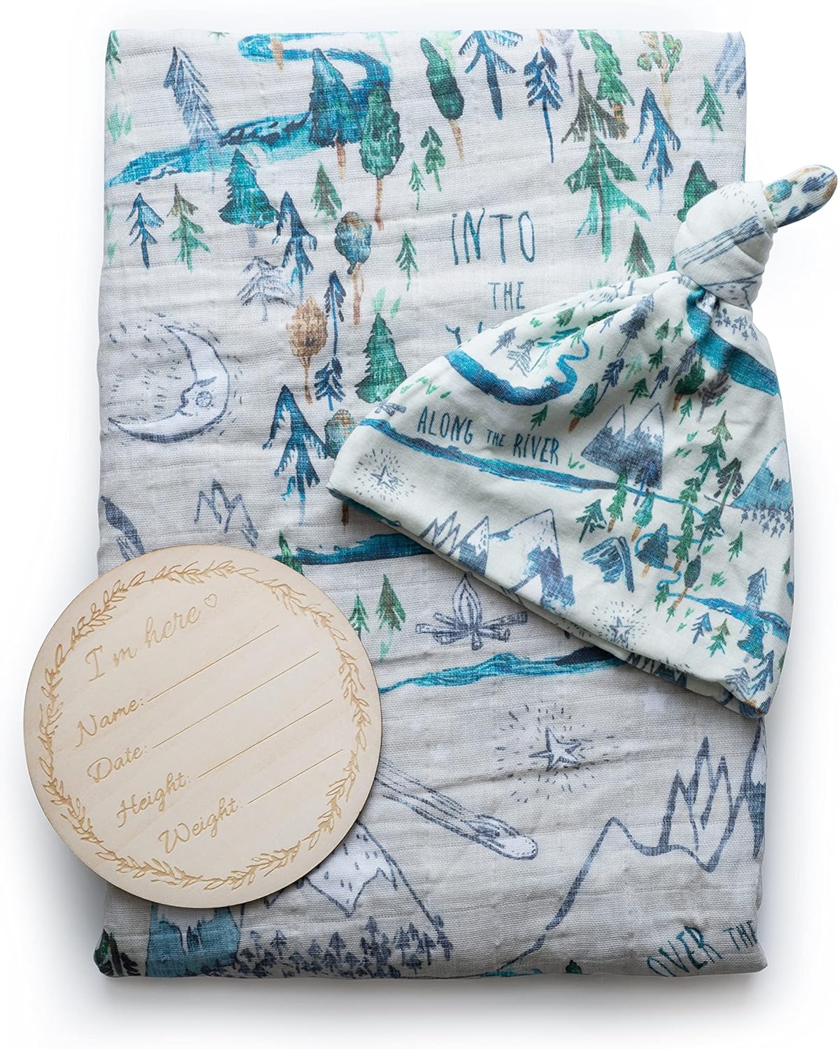 Each swaddle comes with a hand-illustrated adventure forest design, adding a touch of bohemian charm to your nursery. These beautifully crafted blankets are more than just a sleep aidâthey are a statement of love and care. Paired with a free infant hat and a personalized wooden hello world sign, they create a memorable newborn photography outfit that captures precious moments in style.