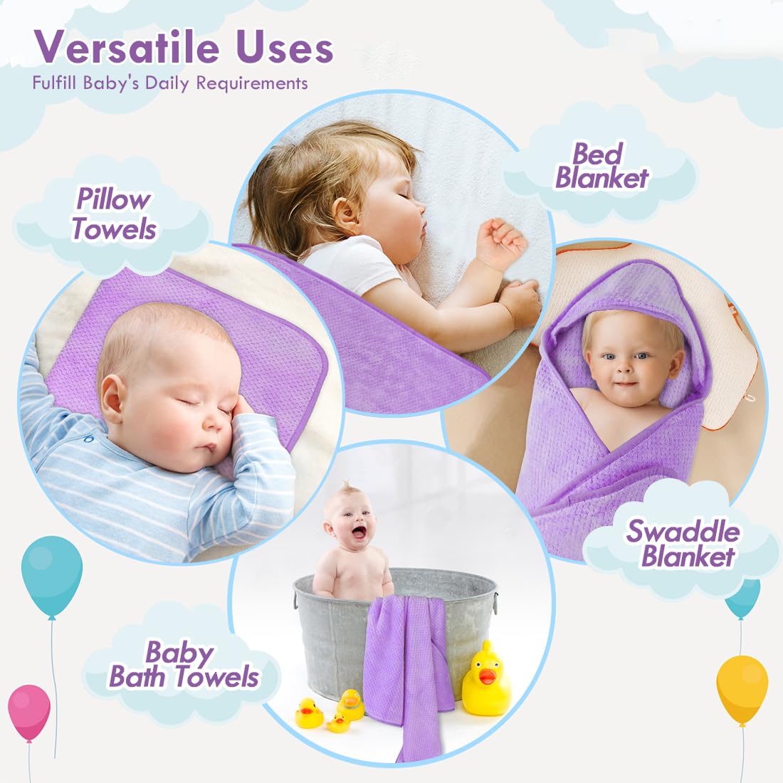 Each set includes a 28 x 28 inch hooded towel and five 8 x 8 inch washcloths, providing a complete solution for baby care routines. The vacuum-packed design ensures eco-friendly shipping, while the durable construction guarantees long-lasting performance for every bath and care moment.