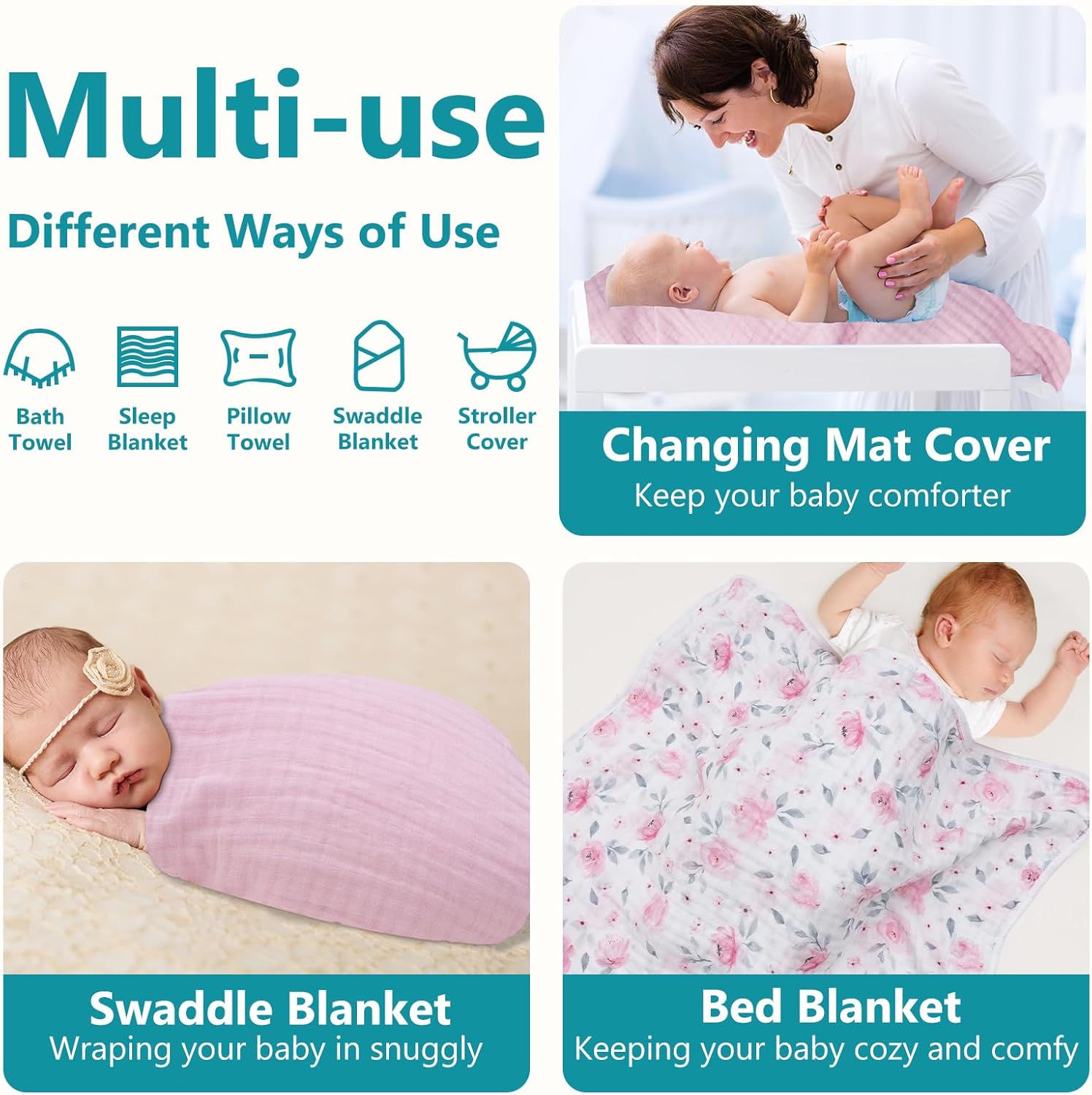 The ultra-absorbent and gentle fabric helps dry skin quickly without causing irritation. With 6 layers of high-quality cotton, these towels are thick, durable, and built to last through daily use. Whether you're at home or on the go, they're perfect for wrapping your baby up, keeping them warm and cozy.
