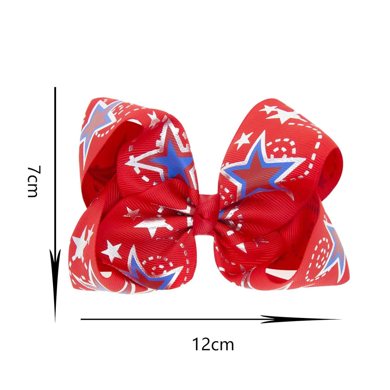 Add a splash of American pride to your childâs everyday style with these handmade patriotic hair bows. Featuring a vibrant American flag design, they are the perfect accessory for Independence Day, school events, and patriotic-themed parties.