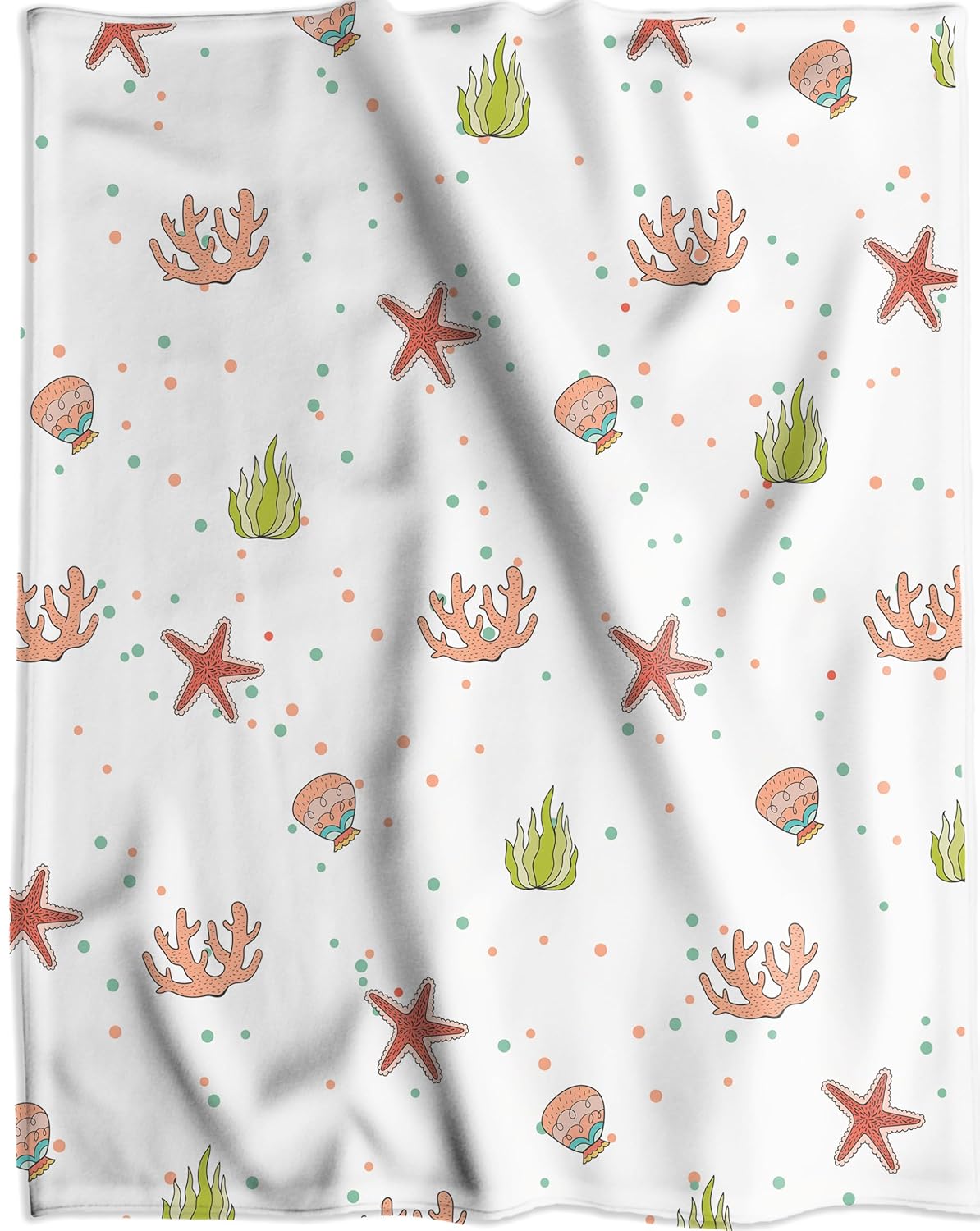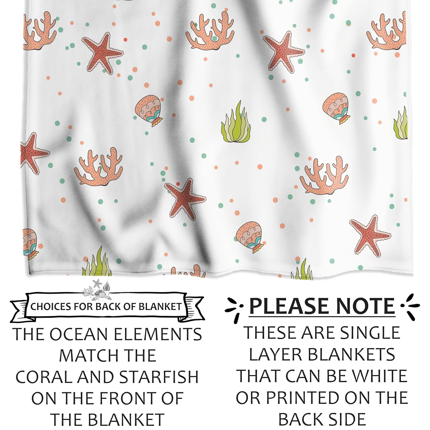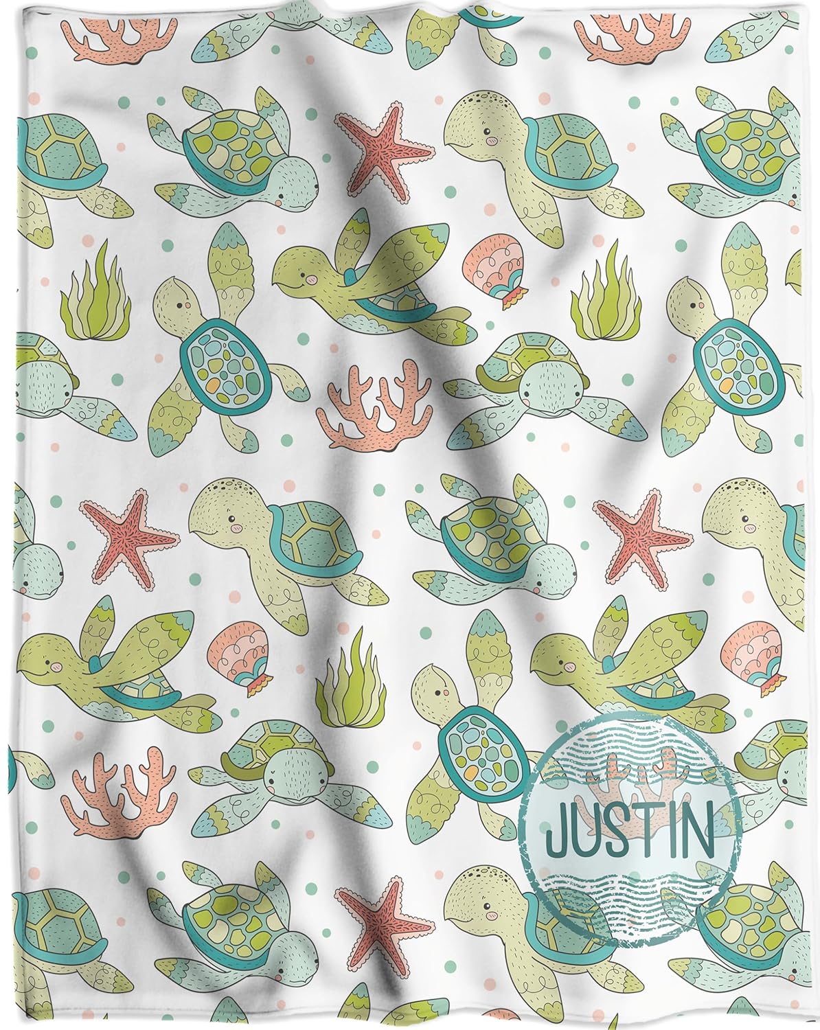 This soft and stylish blank is more than just a cozy addition to your babyâs roomâit's a heartfelt gift that carries a piece of your love. With a custom name beautifully printed at the bottom, it becomes a unique and memorable keepsake for your little one. The charming nautical theme features sea turtles, starfish, coral, and seaweed, creating a lively and enchanting design that brings the ocean to your nursery.