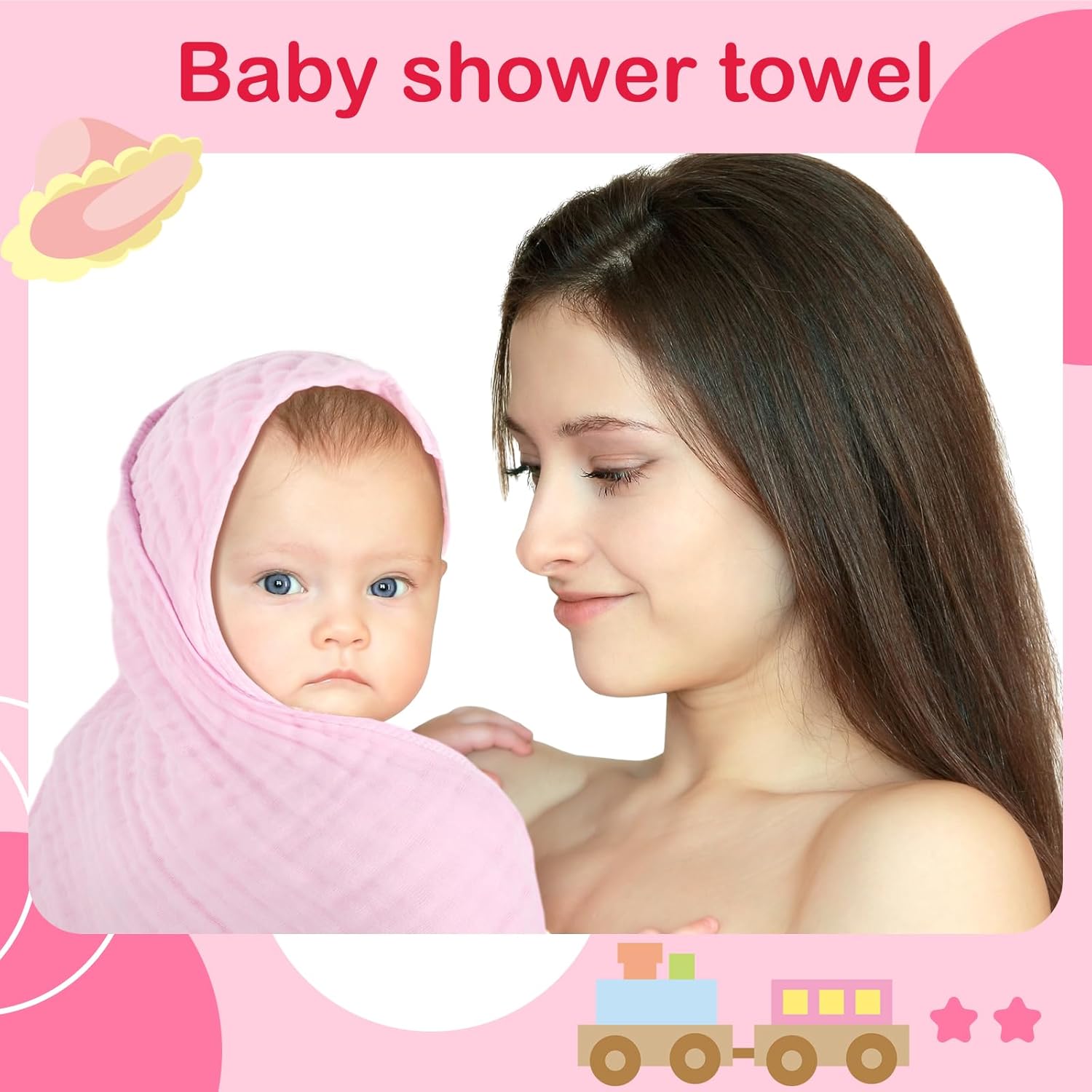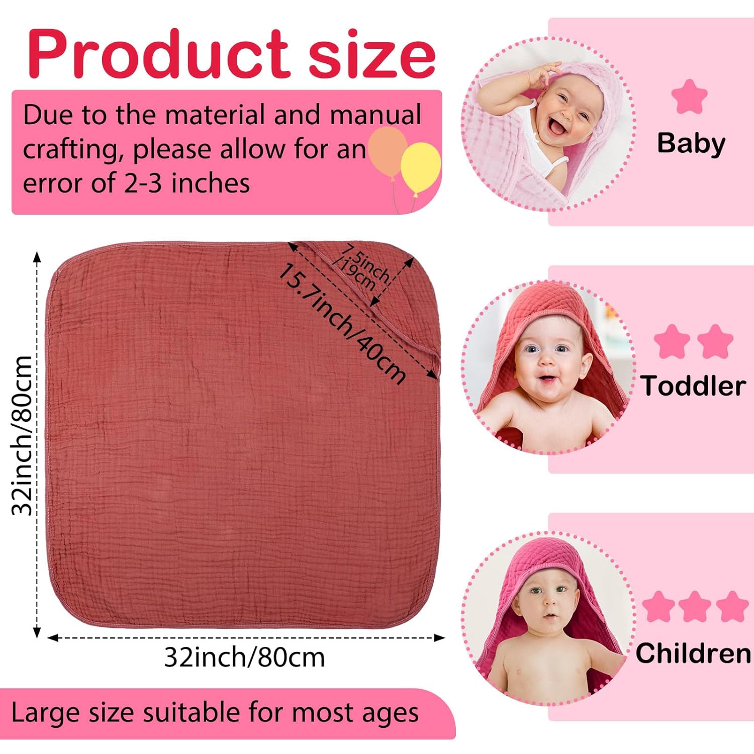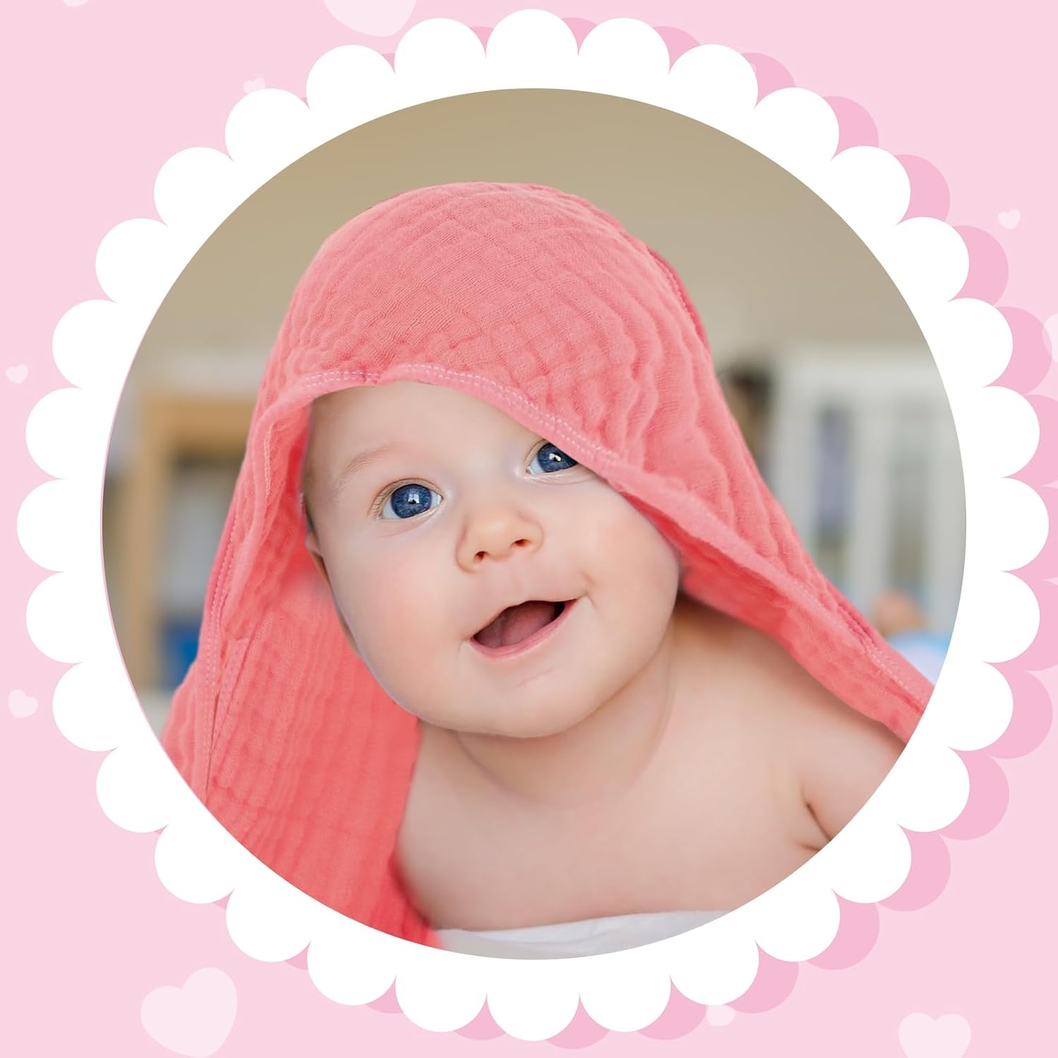 These baby hooded towels are designed with love and care for your little one. Crafted from 6 layers of high-quality cotton muslin, they deliver a perfect balance of softness and absorbency, making them an ideal choice for newborns and babies. Each towel measures 32 x 32 inches with a thoughtfully designed hood that covers the head and body for added comfort during bath time. Not just for drying, these versatile towels can serve as baby blankets, swaddling wraps, play mats, or even as a stroller cover. Their thick and absorbent fabric ensures quick drying and keeps your baby warm after a bath. The well-sewn edges make machine washing safe and easy, making them perfect for frequent use with your little one. With six different colors to choose from, these towels add a stylish and charming touch to any nursery or baby care routine. Whether you're at home or out and about, they are a reliable and practical gift that every new parent will appreciate. Great for baby showers or as a newborn registry gift, these towels are the perfect blend of function and beauty.Peryiter 6 Pcs Hooded Muslin Baby Towels