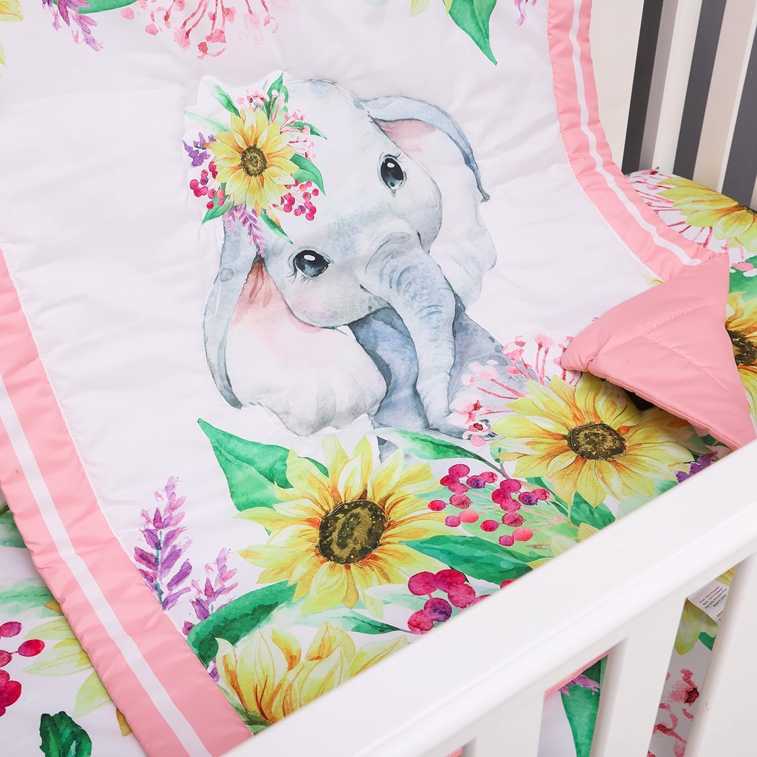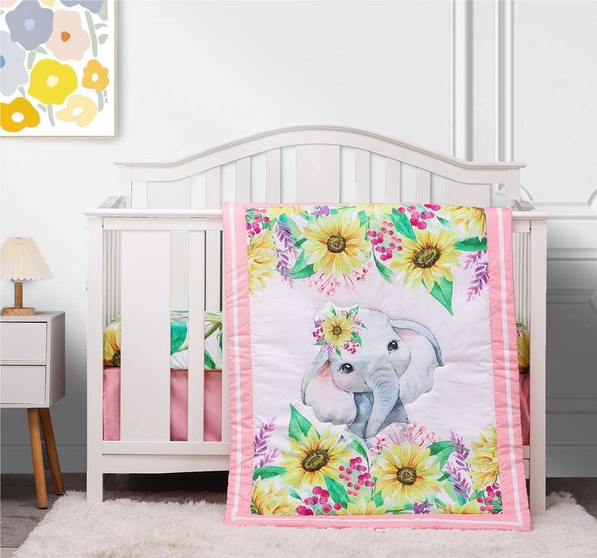 This adorable crib bedding set is crafted with your babyâs comfort and safety in mind. Soft and breathable microfiber ensures a cozy sleep environment while OEKO-Tex certification guarantees that it's free from harmful chemicals, making it a perfect choice for parents who prioritize their childâs well-being. The set includes a quilt, crib sheet, and dust ruffle, offering a complete and charming nursery look. Its playful elephant print in pastel colors adds a whimsical touch to any room, transforming the sleep space into a magical, kid-friendly area. Designed for easy care, the bedding is machine-washable and comes in a low tumble dry design, perfect for busy parents who want to keep things simple. Whether you're preparing for a baby shower or a Christening, this set is an excellent gift that combines both style and quality. It's designed not only to look beautiful but also to serve as a lasting piece of nursery decor that your little one will love. Invest in a crib bedding set that brings comfort, safety, and style together. The soft microfiber ensures a restful sleep, while the OEKO-Tex certification gives you peace of mind. The cute elephant theme is sure to delight your baby and create a warm, welcoming atmosphere in the nursery. Create a charming and safe sleep environment for your baby with this pink cartoon elephant crib bedding set. Perfect for any nursery and ideal for busy parents who want a stylish, easy-to-care-for solution.Pink Cartoon Elephant Crib Bedding Set for Girls