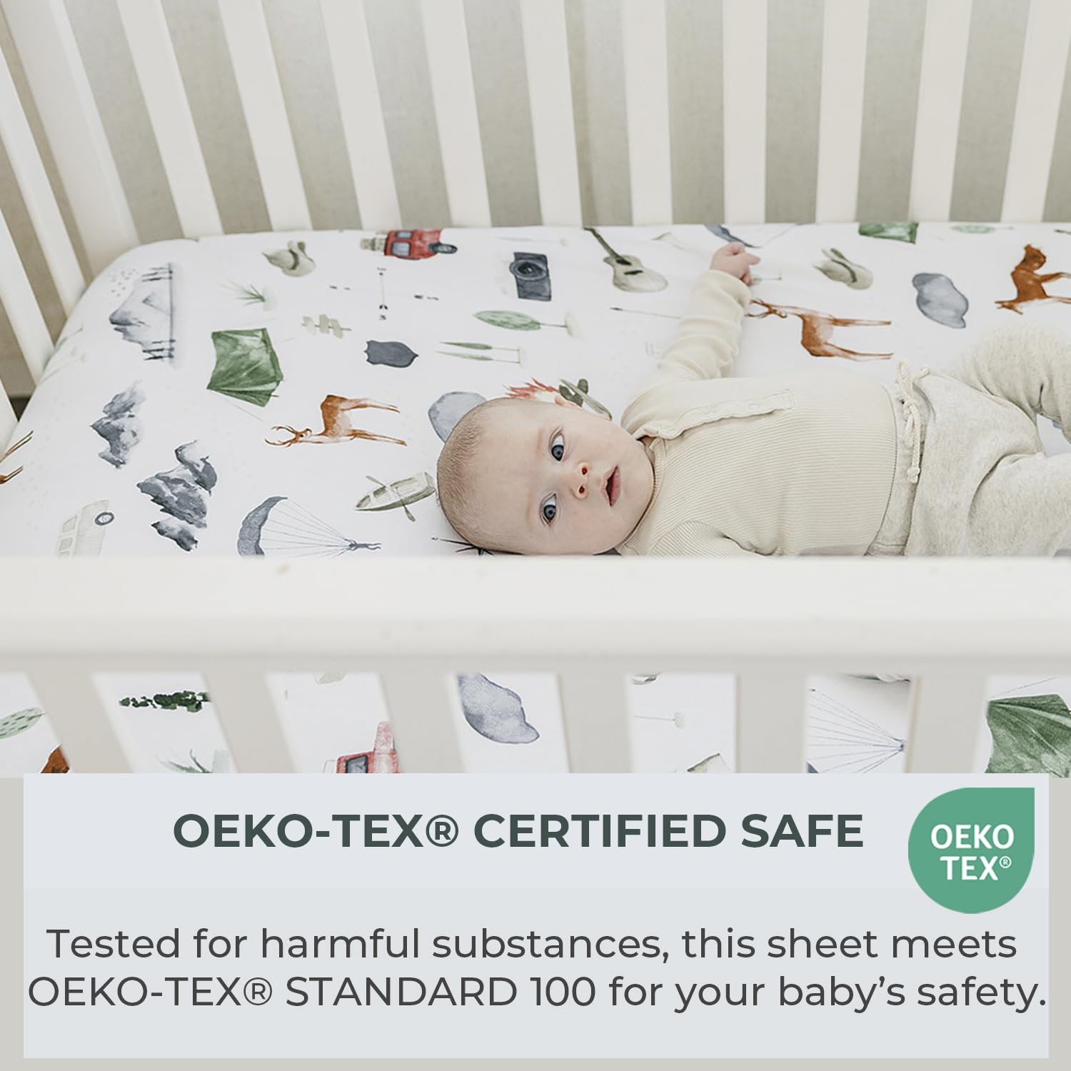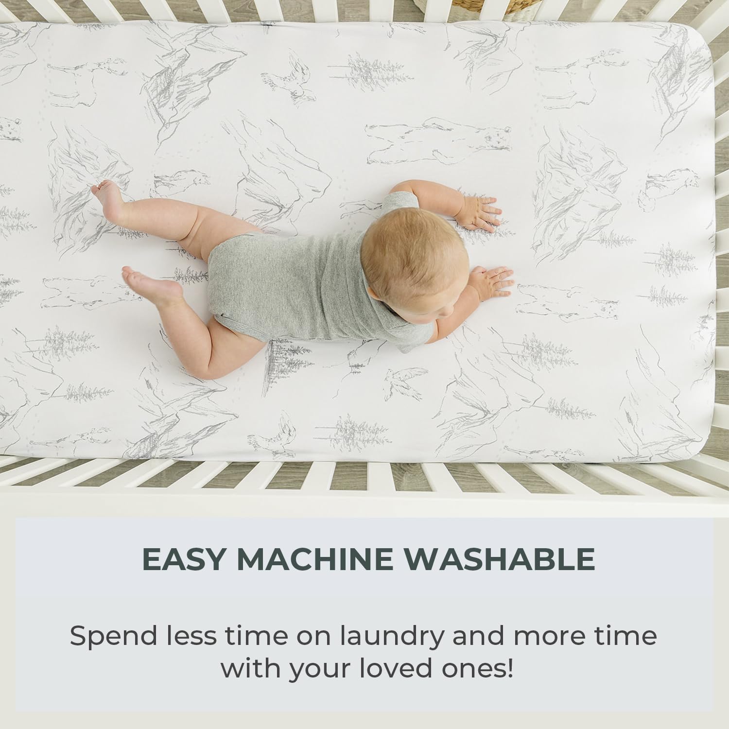 Introducing the perfect blend of comfort and style with Pobibabyâs Woodland Crib Sheets. These premium baby bedding sheets are made from a gentle 95% cotton and 5% spandex blend, offering a soft, breathable feel thatâs ideal for your babyâs delicate skin.