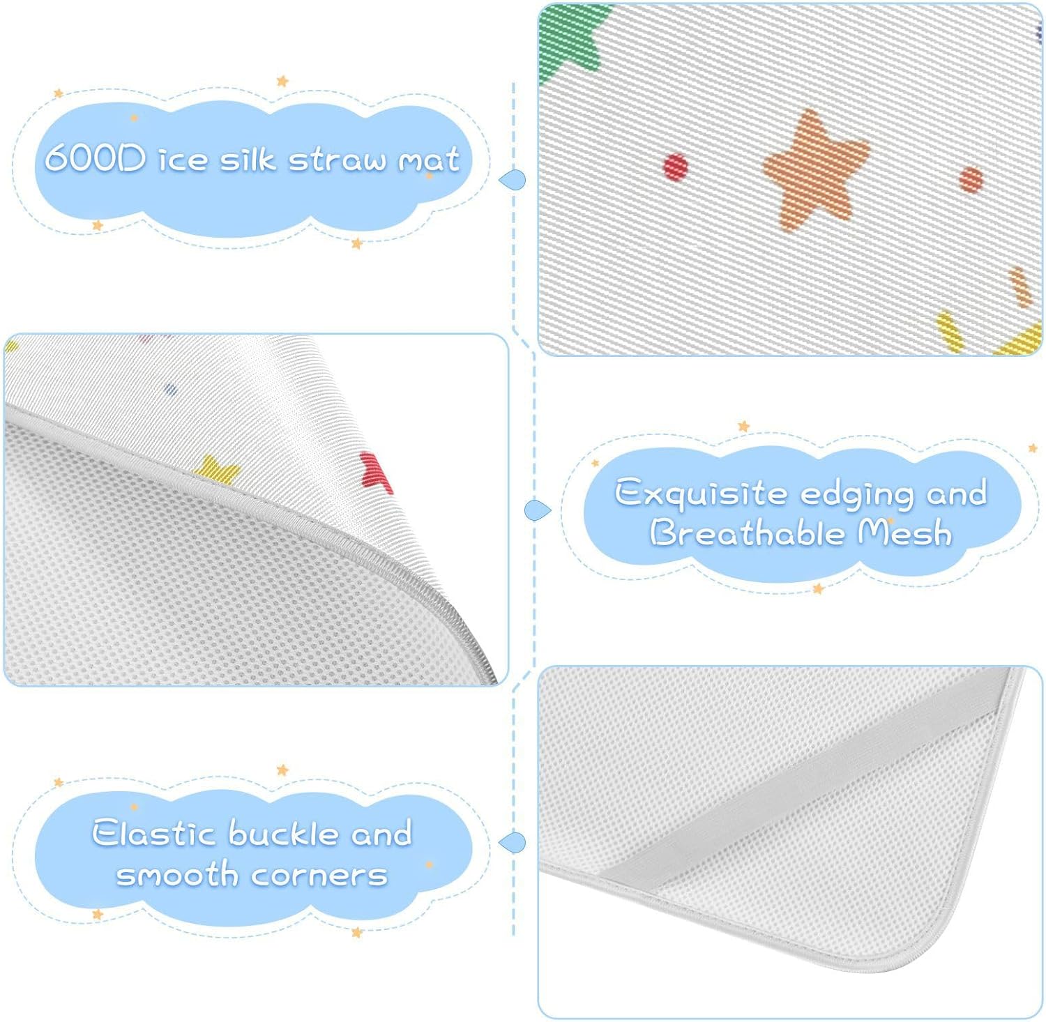Cooling baby mattress pad made of ice silk fabric, breathable holes, and elastic corners for a secure fit. Easy to clean and perfect for pack n play and nursery use. Ideal gift for baby's birthday or shower.