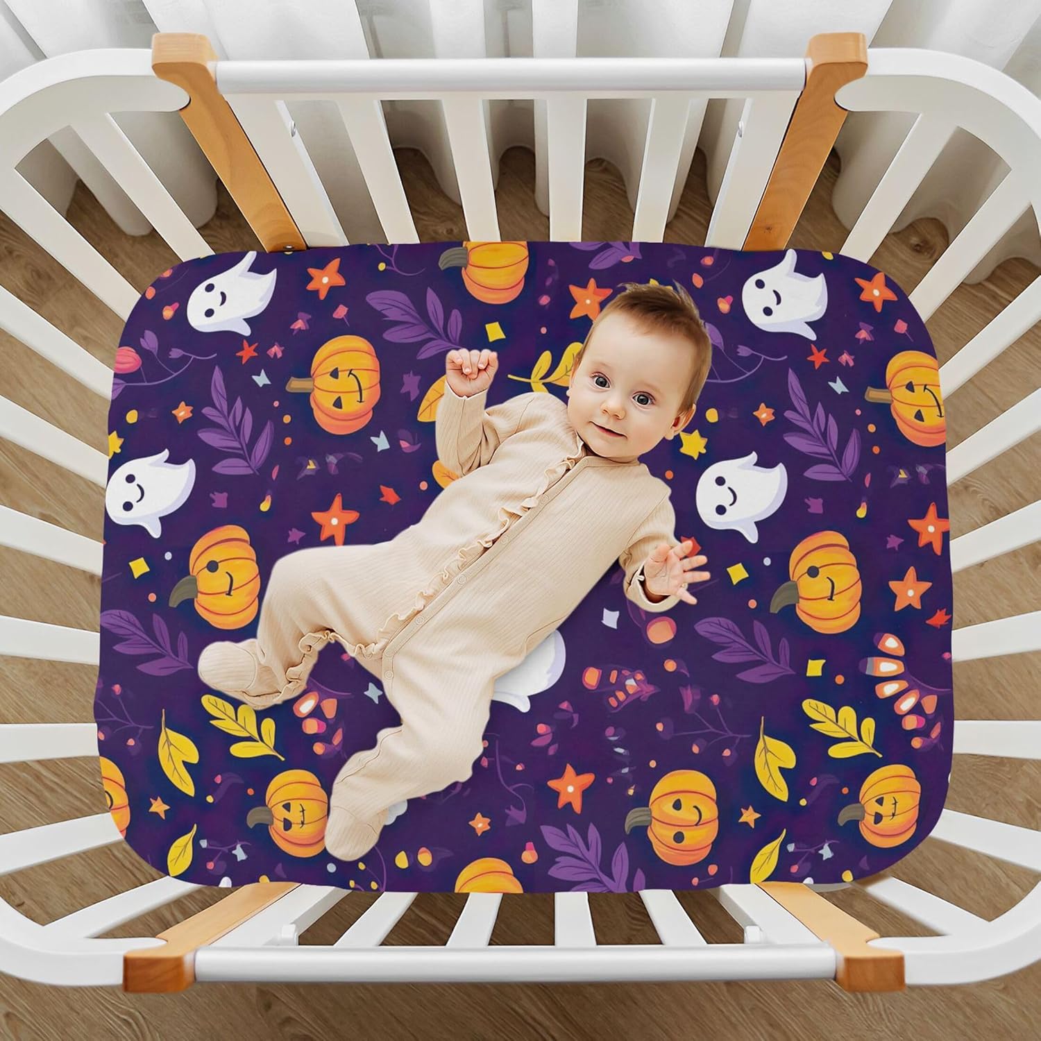 This adorable crib sheet combines softness with style, creating a cozy sleeping environment for your little one. The breathable fabric, made with 95% polyester and 5% spandex, is gentle on your babyâs skin and ensures all-day comfort. The unique pumpkin design adds a playful and warm touch to your nursery, making it a standout piece in any baby room.
