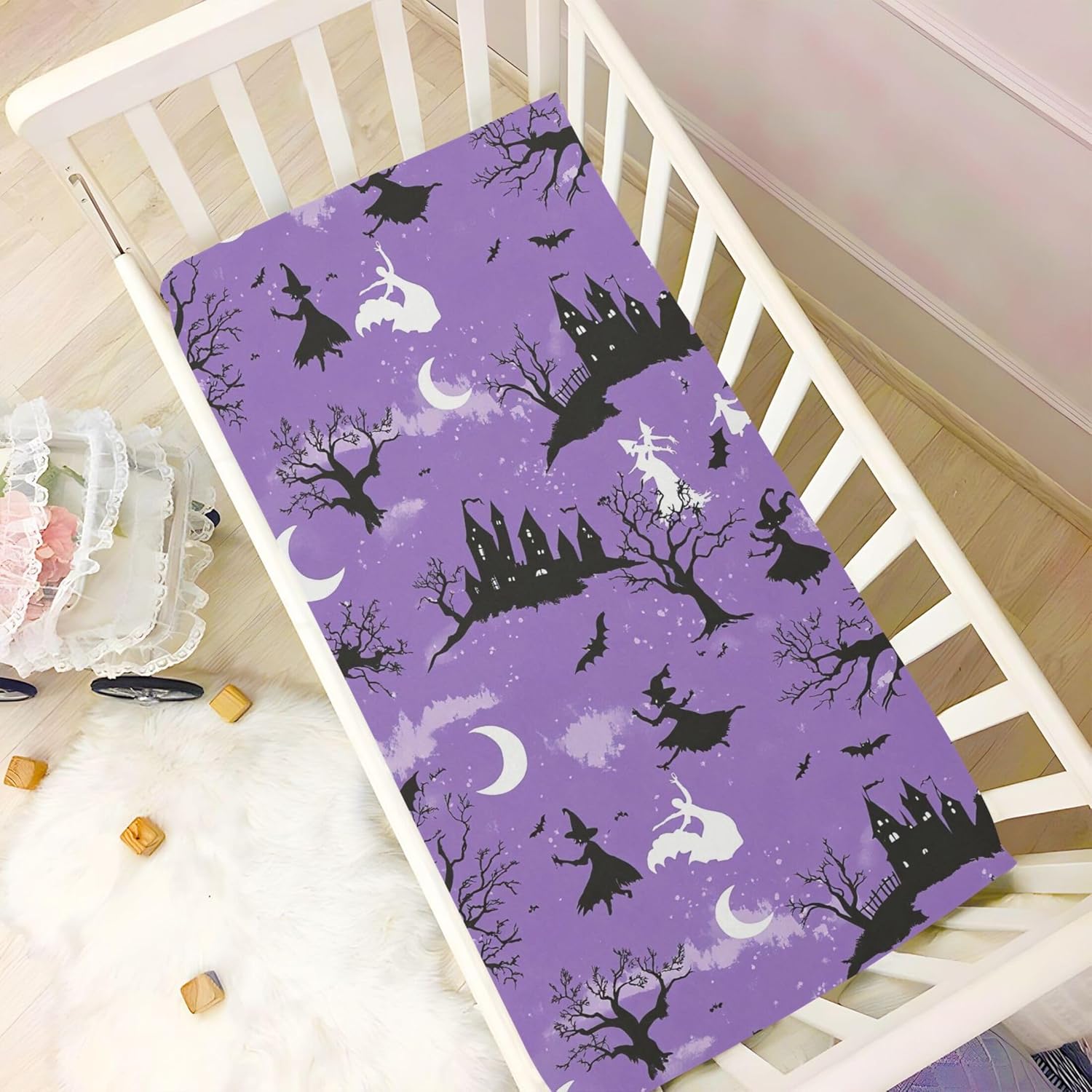 Our Qilmy Flying Witches Crib Sheet is more than just a bedding accessory â itâs a stylish and functional way to make your babyâs sleep space cozy, safe, and memorable. With its enchanting design and high-quality materials, it's a must-have for every parent.