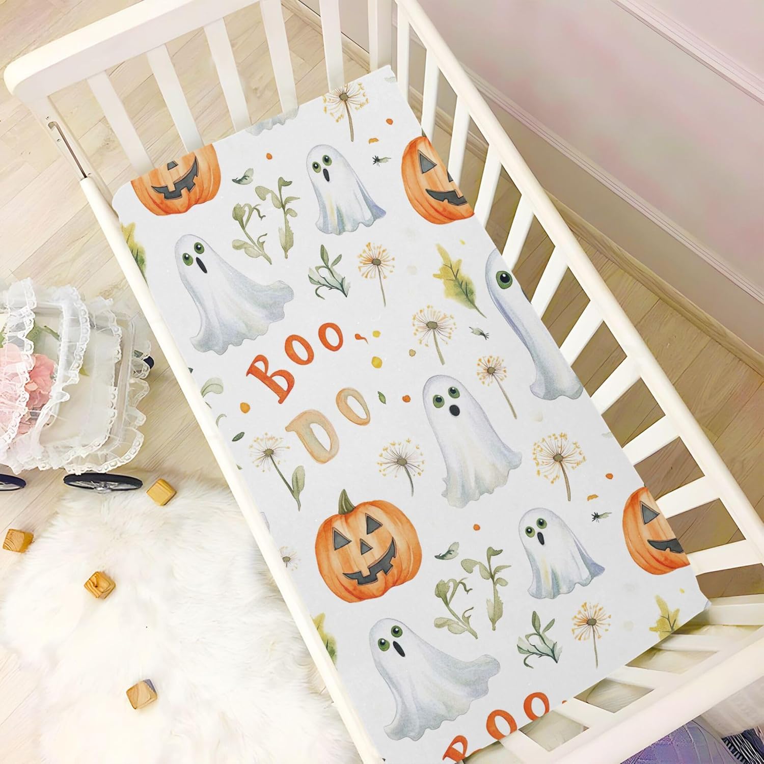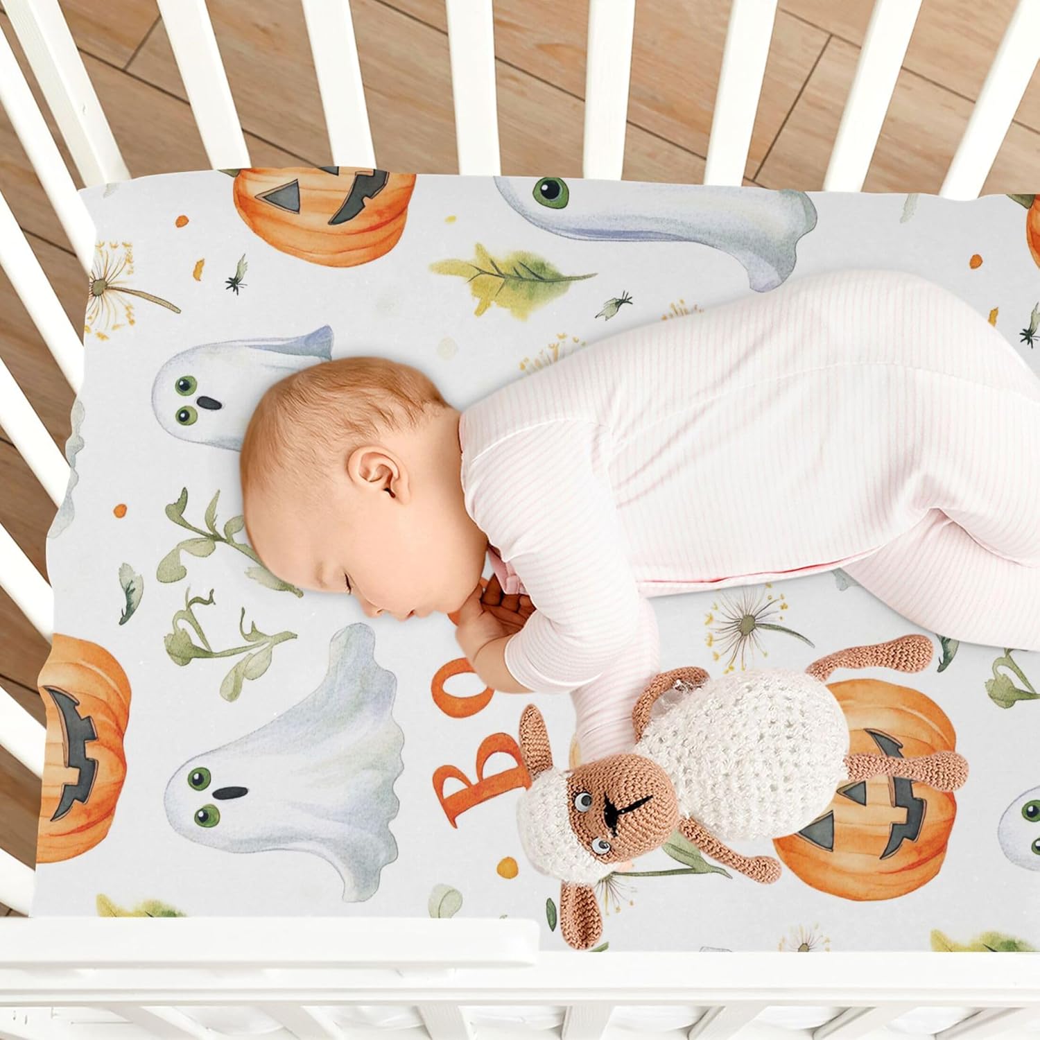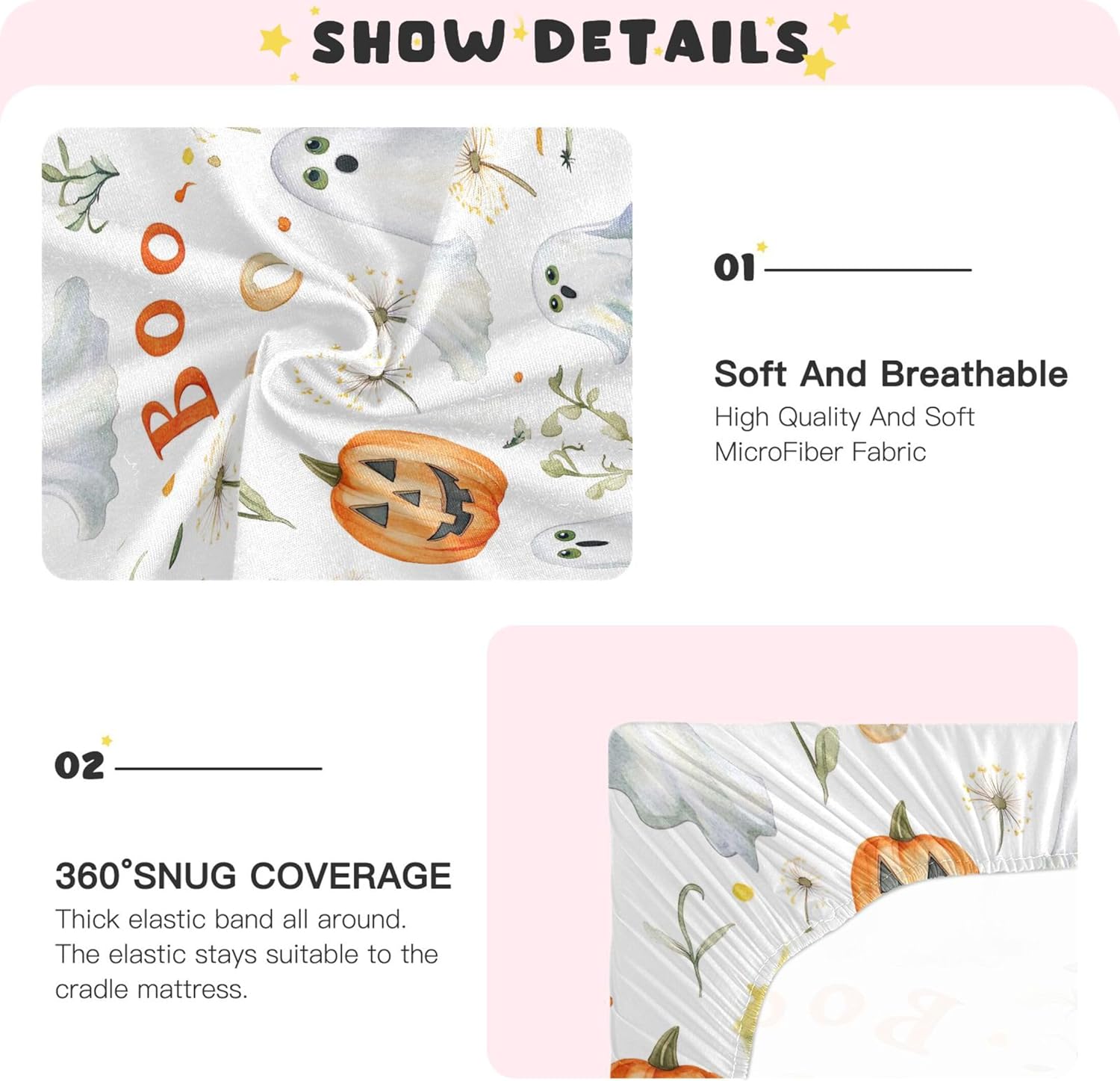 This beautifully designed crib sheet combines gentle comfort with a playful pumpkin motif, perfect for adding a seasonal charm to your babyâs nursery. Made from a soft blend of 95% polyester and 5% spandex, it feels luxurious against your babyâs sensitive skin and offers a breathable surface for a restful nightâs sleep.