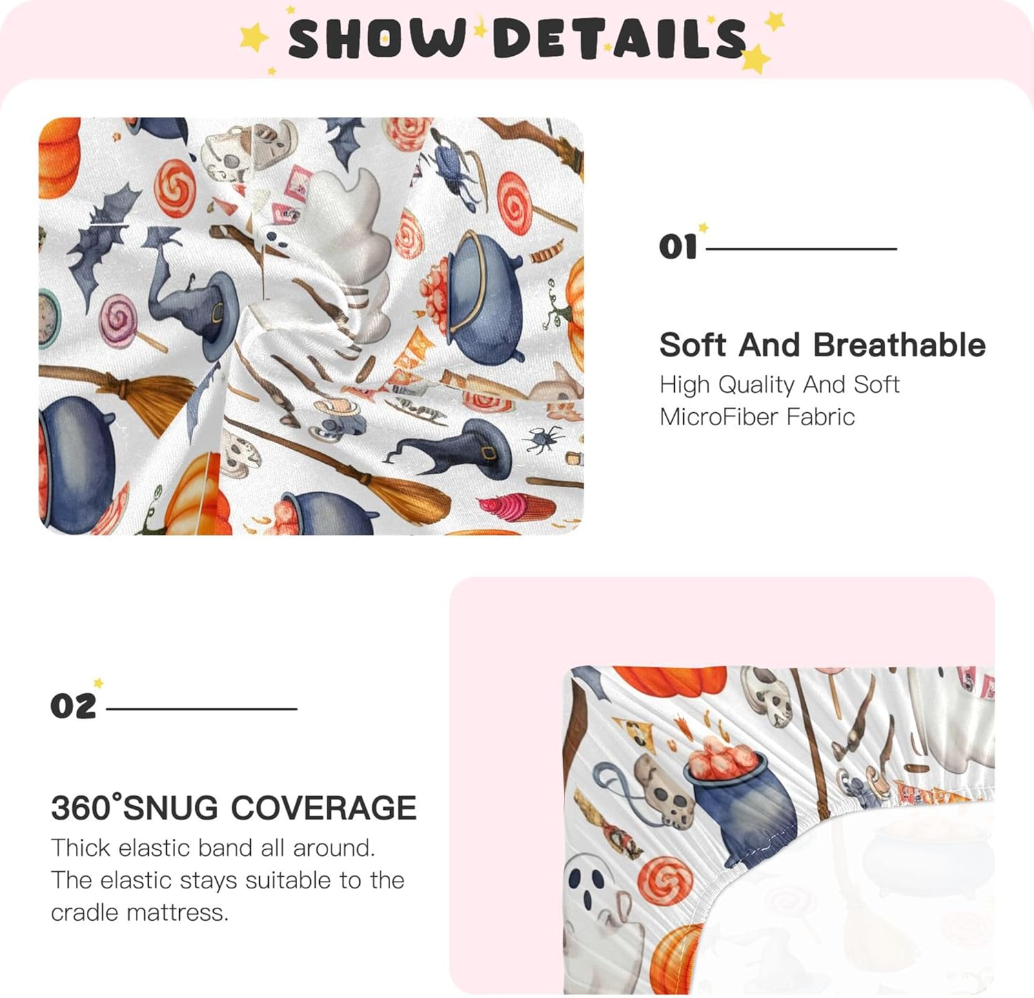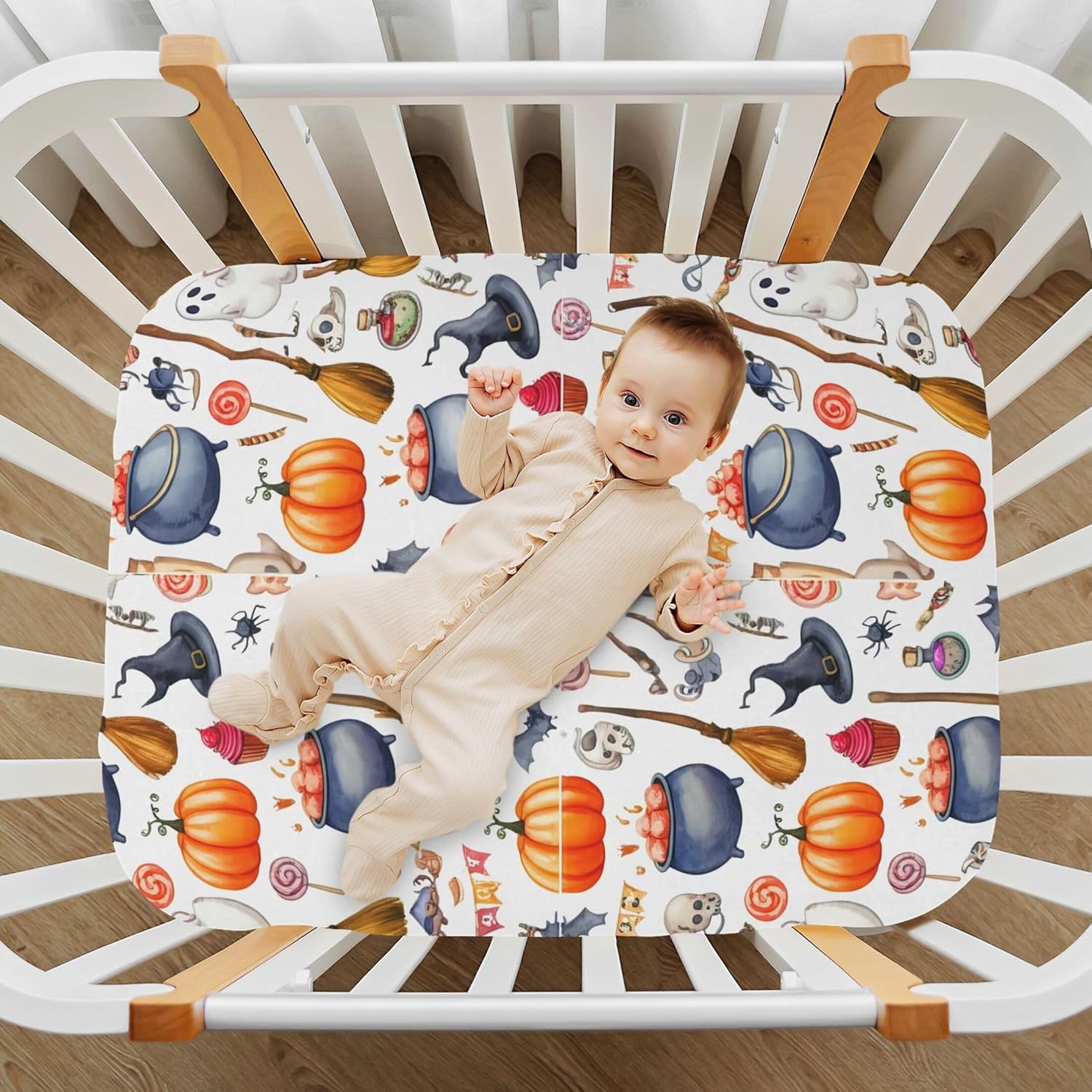 This versatile crib sheet is the perfect addition to any babyâs room, especially during Halloween. It adds a touch of fun and whimsy to your nursery, while still being safe, clean, and easy to maintain. The fade-resistant material ensures that your babyâs space stays stylish for years to come. Whether you're preparing for a baby shower or looking for a thoughtful birthday gift, this sheet is both practical and eye-catching.