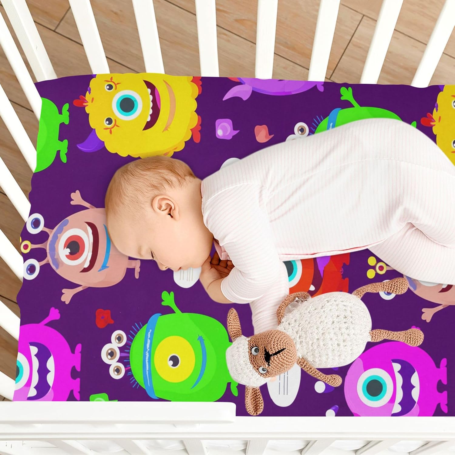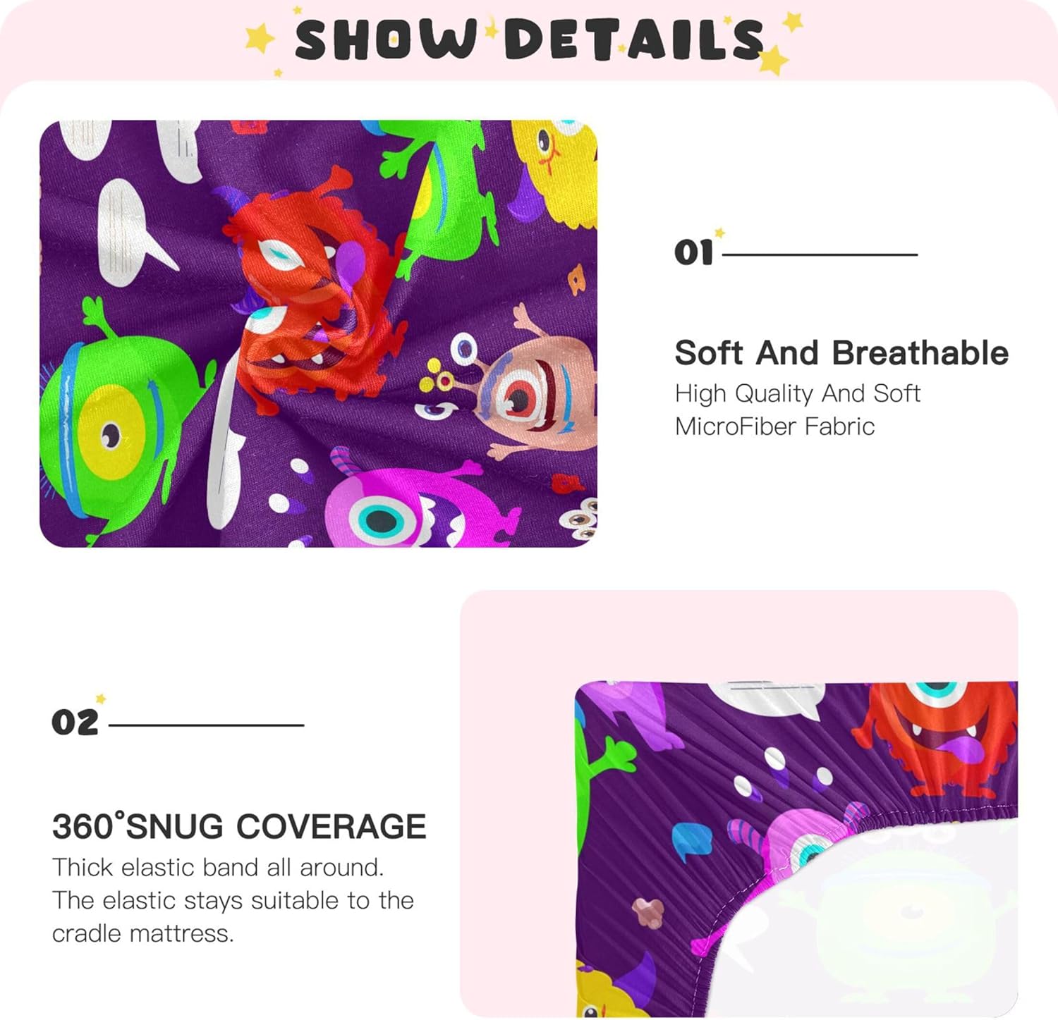 Qilmy Halloween Fitted Crib Sheet offers soft, breathable comfort for babies. Designed for standard and toddler mattresses, with an elastic band for a snug fit. Easy to clean and a perfect gift for baby showers and birthdays.
