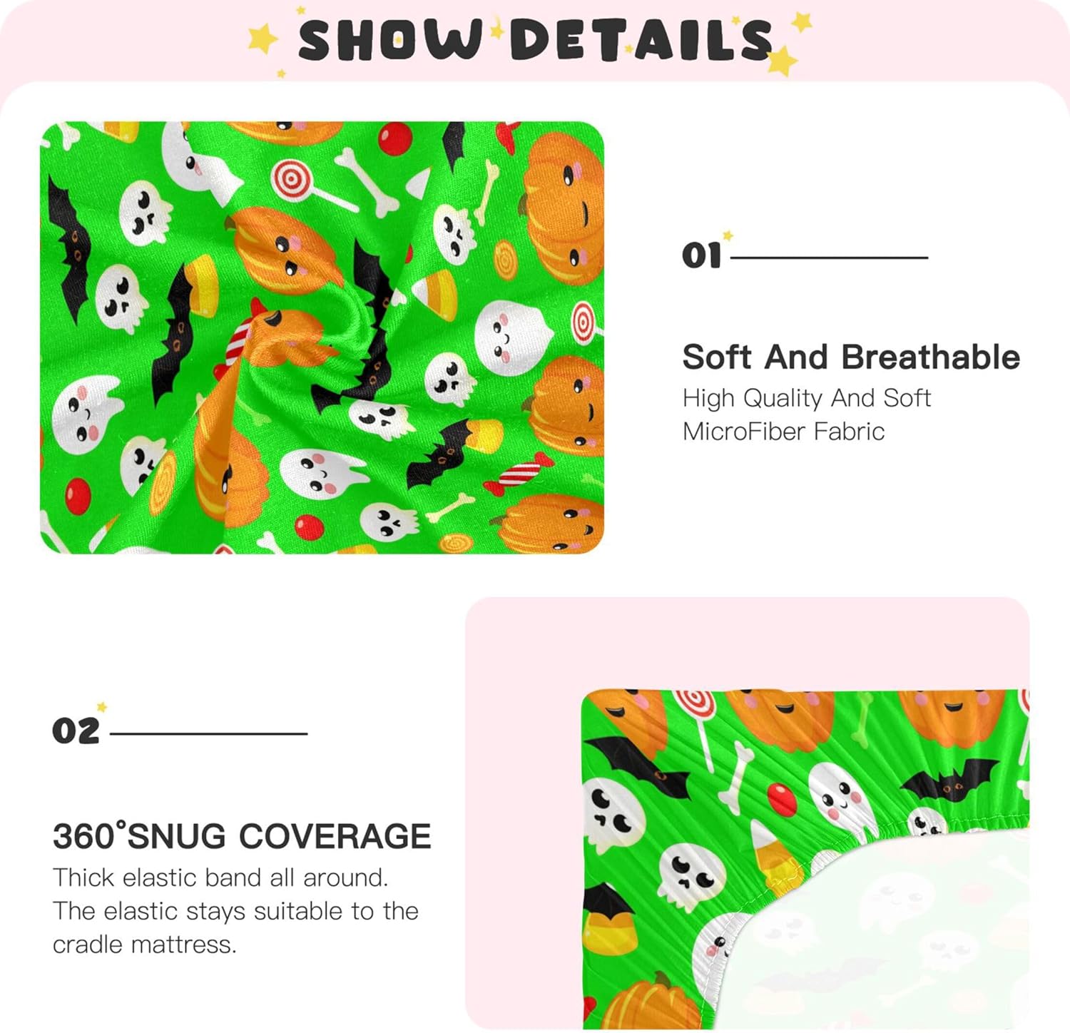 With a focus on customer value, this fitted crib sheet offers a perfect balance of style, functionality, and durability. Its fade-resistant and easy-to-clean design makes it ideal for long-term use in any nursery. Whether you're looking for a gift or a must-have for your baby's room, this is the Halloween crib sheet you can trust.