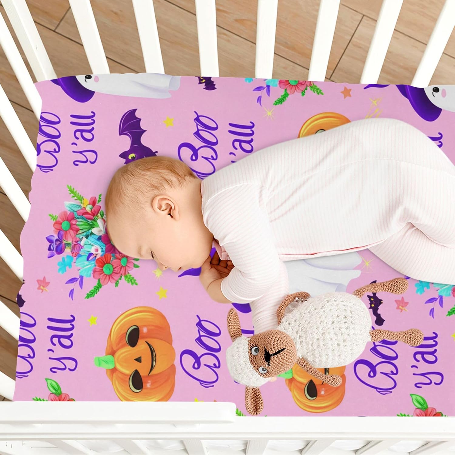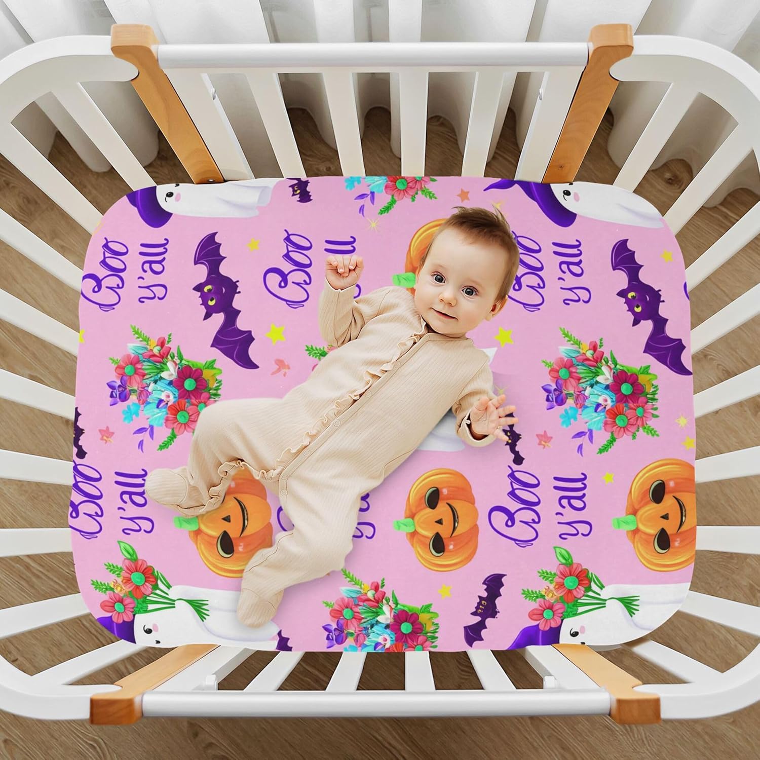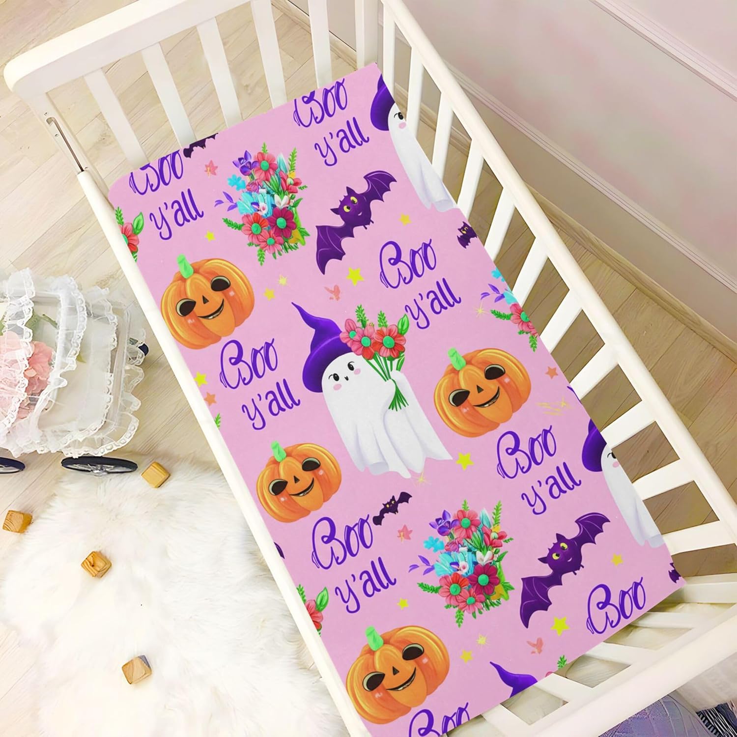 Featuring an elegant Halloween ghost print, this fitted crib sheet adds a touch of festive charm to any nursery. Itâs not only stylish but also easy to clean and built to last with fade-resistant properties. Whether you're preparing for a baby shower or looking for a unique birthday gift, it's the perfect way to make bedtime magical and memorable for your baby.