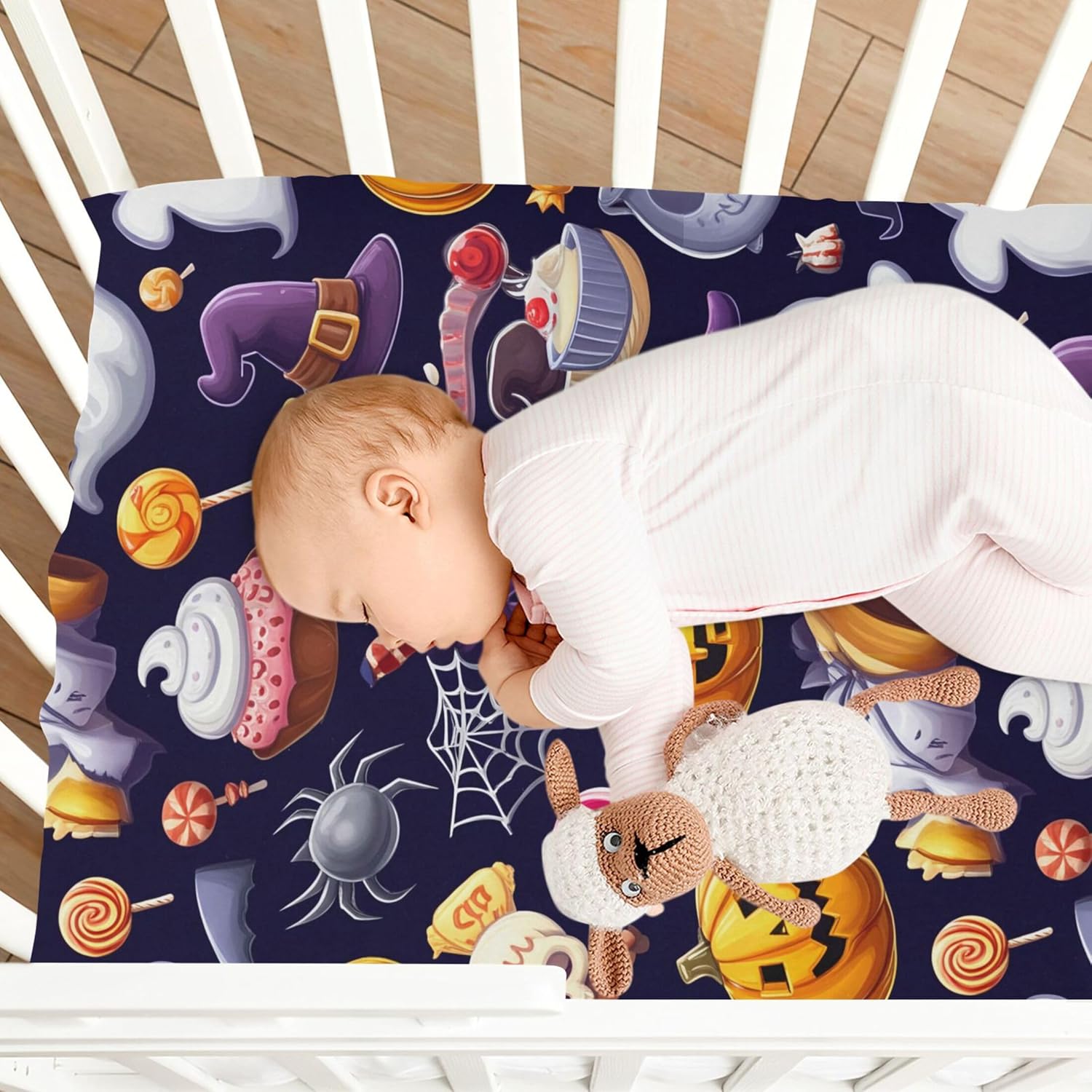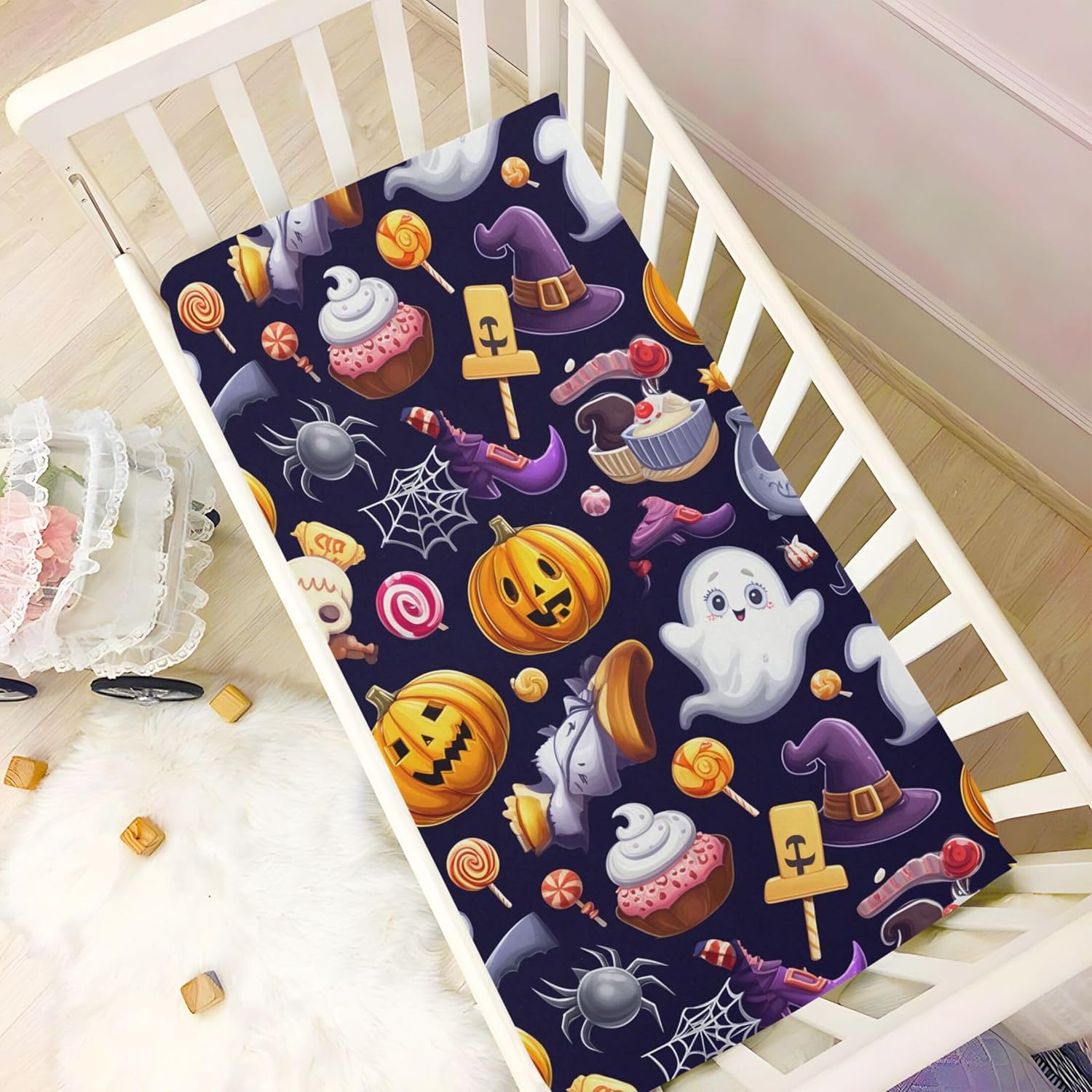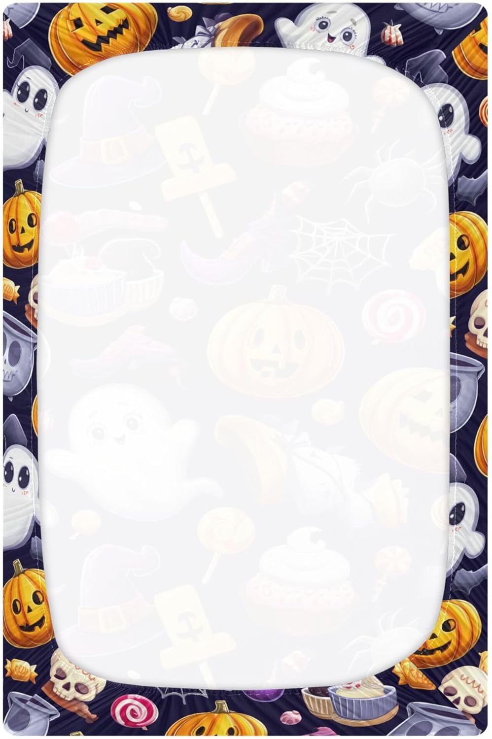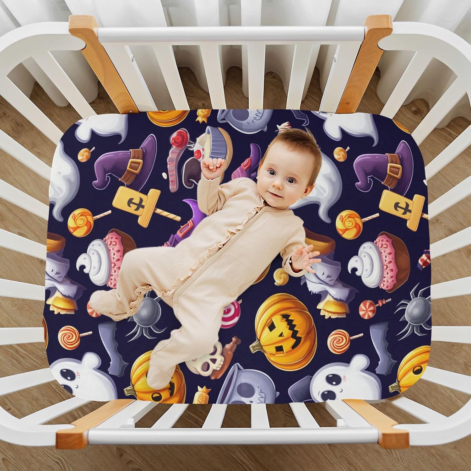This Halloween-themed crib sheet is crafted with soft, breathable fabric to keep your baby cozy and comfortable all night long. The charming ghost design brings a touch of spooky fun to your nursery, making it a delightful way to celebrate the season while maintaining a safe and stylish sleeping environment.