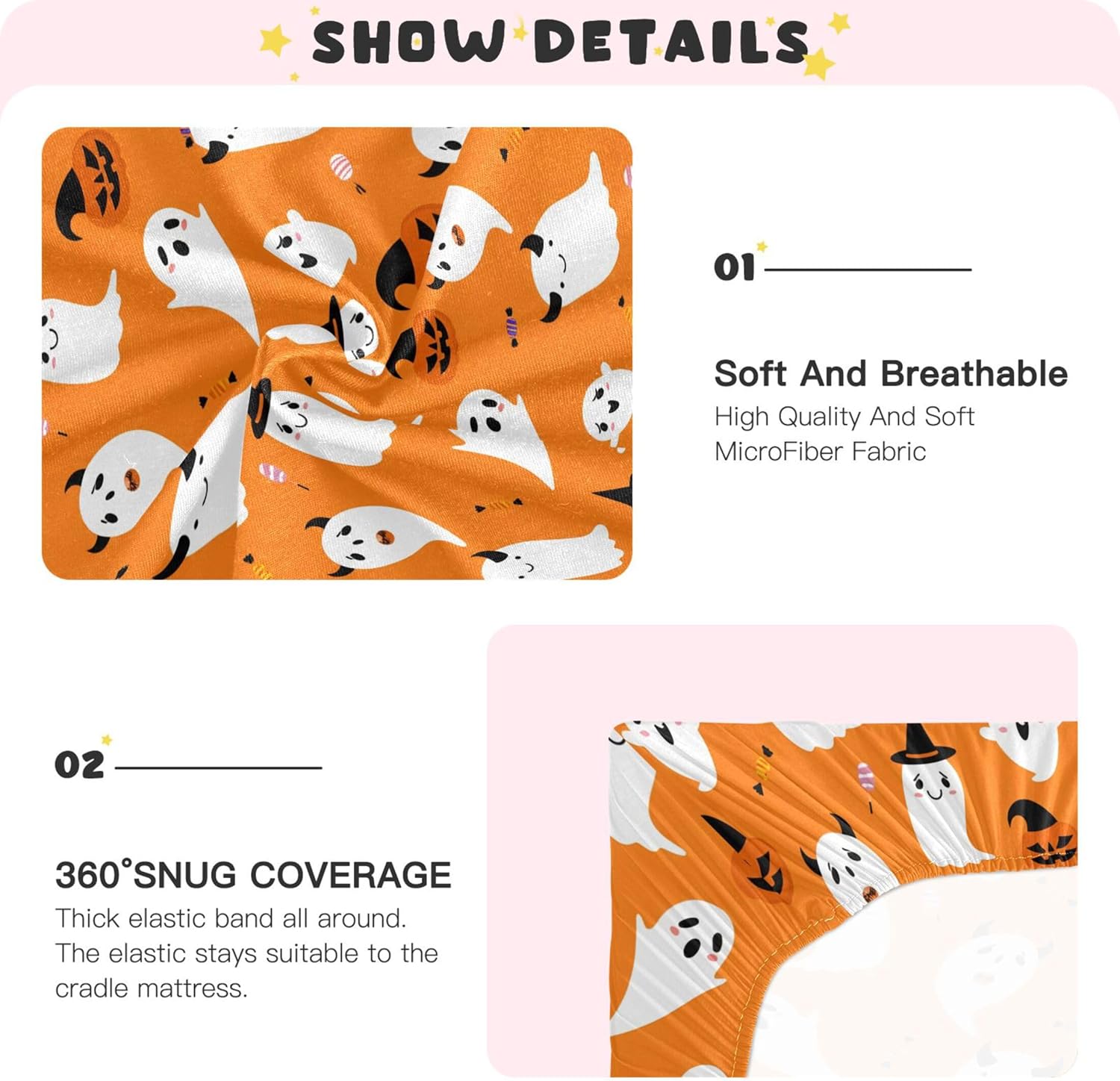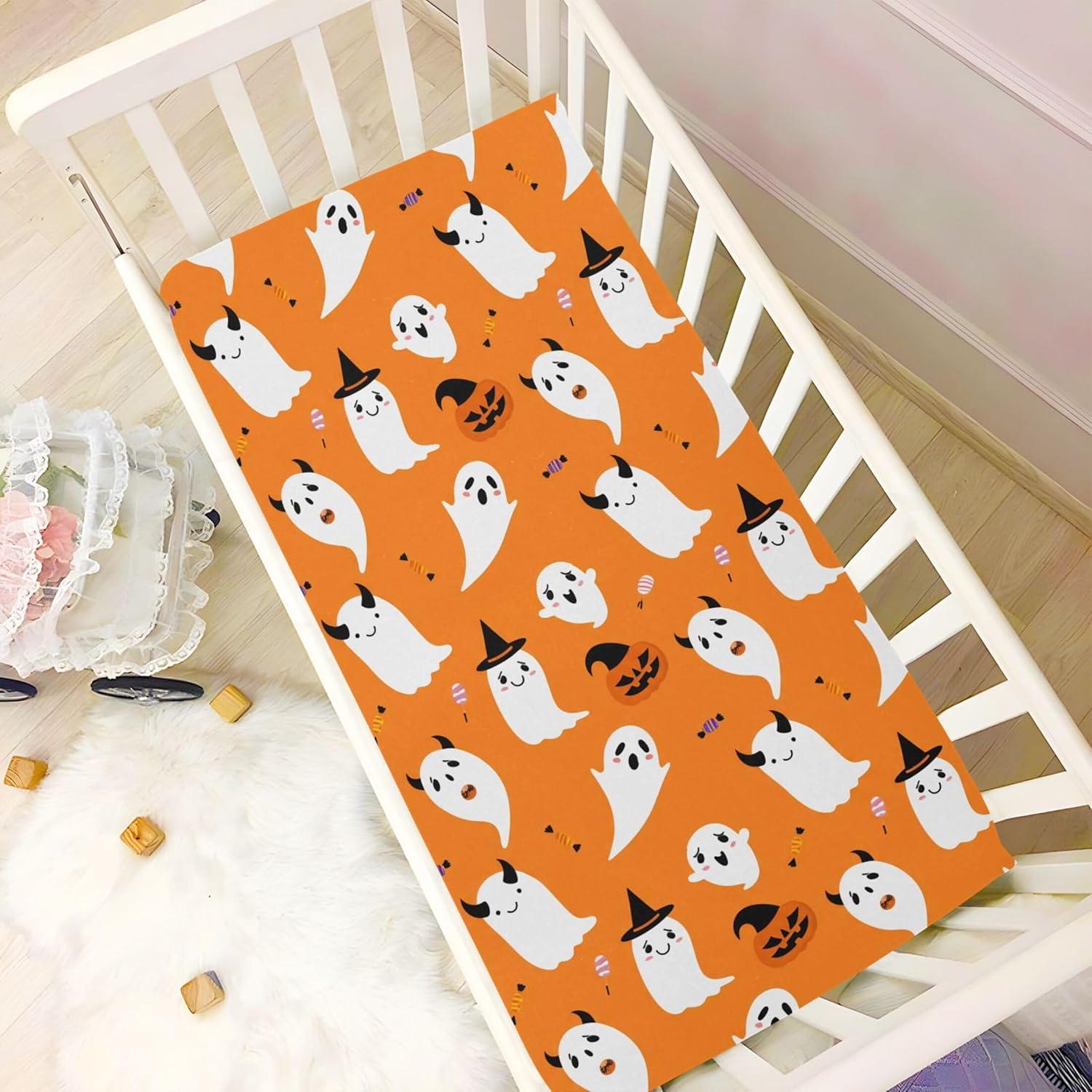 Get ready for a spooktacular sleep experience with this Halloween-themed fitted crib sheet. Designed with comfort and style in mind, it creates a cozy and safe haven for your little one during the most magical time of the year.
