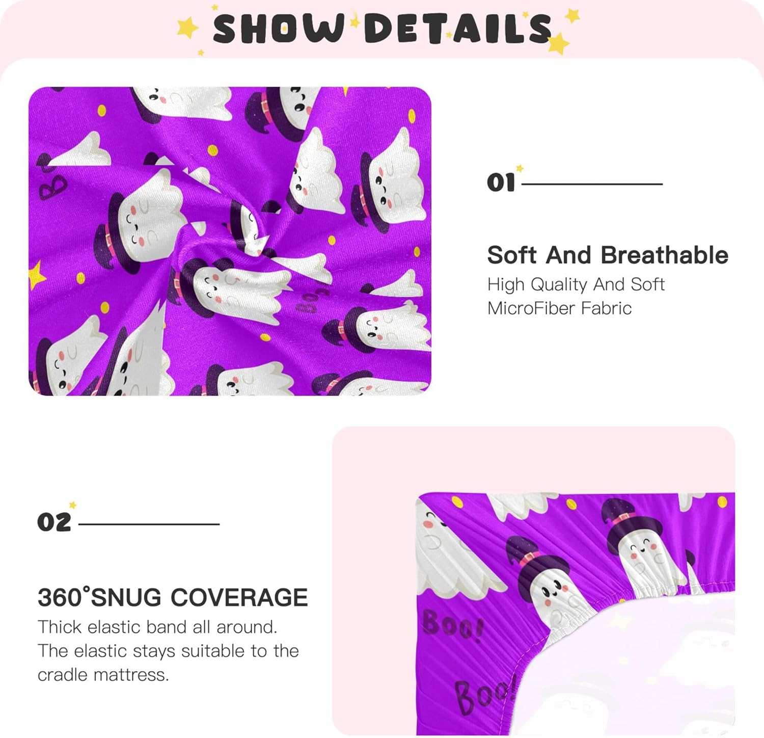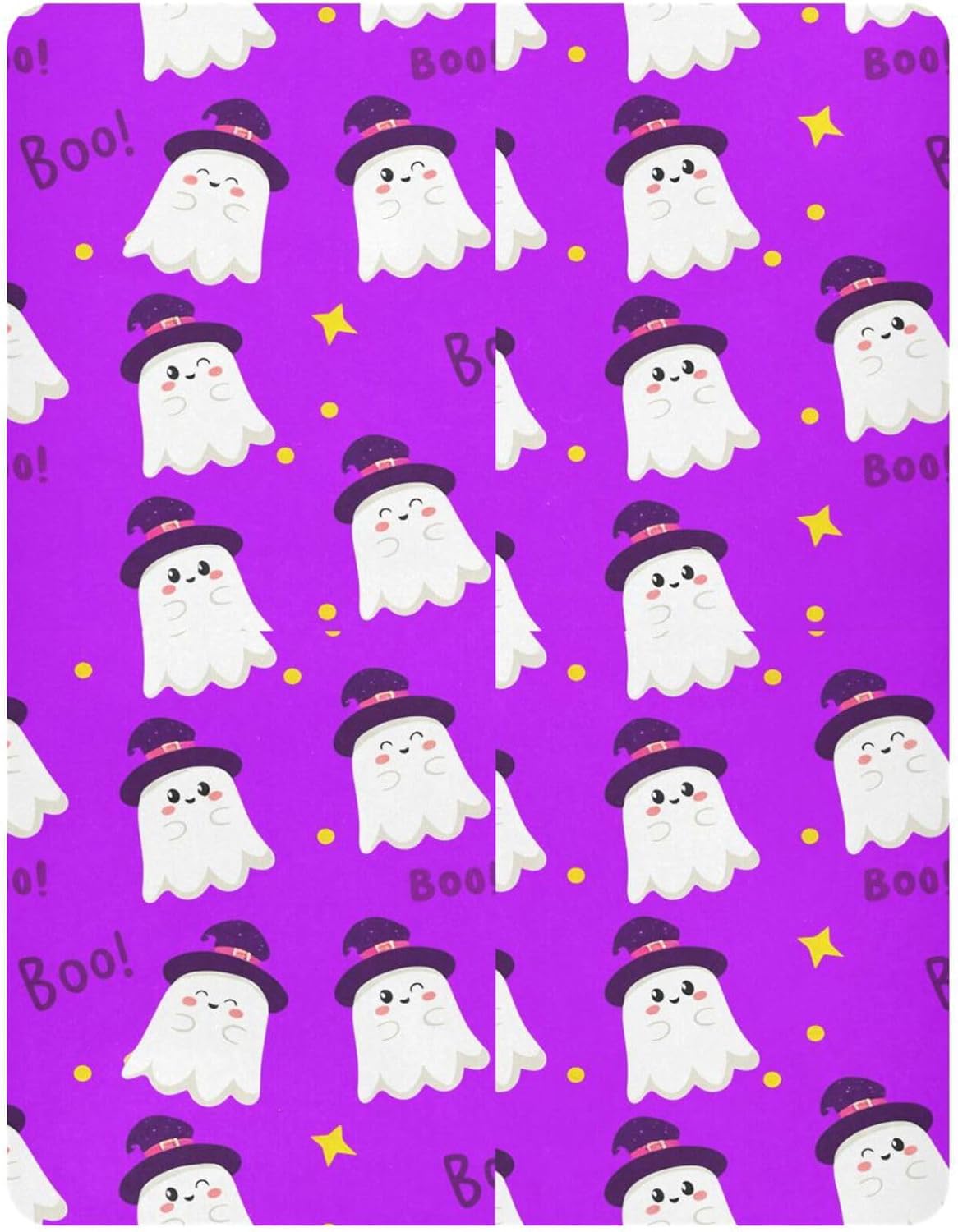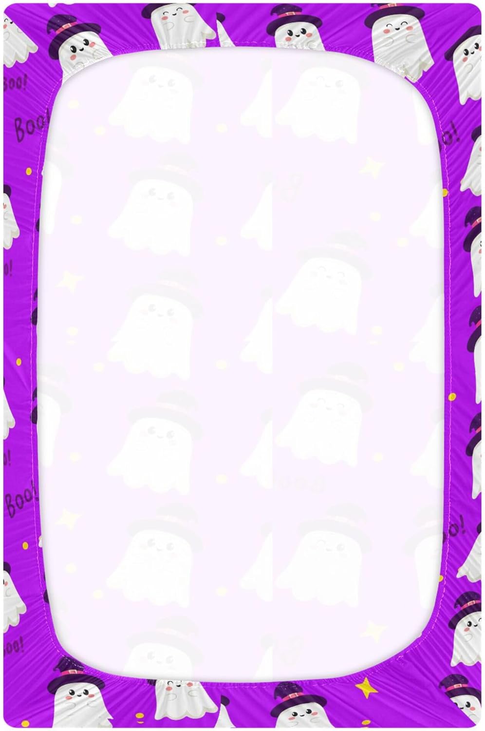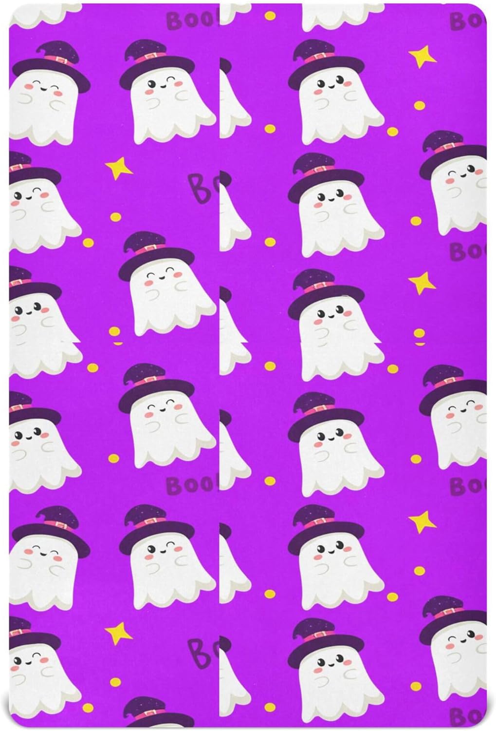Qilmy Halloween Ghosts Fitted Crib Sheet offers soft, breathable comfort for your baby. Perfect fit for standard and toddler bed mattresses with an elastic band around the edge. Add festive fun to the nursery with this elegant sheet. Easy to clean and durable for long-term use.