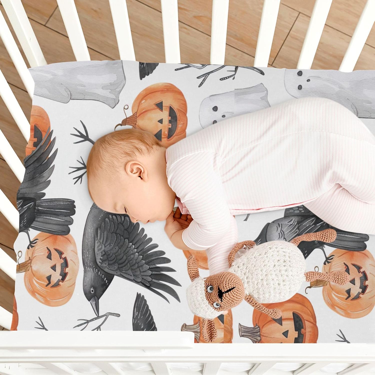 Transform your babyâs nursery with this exquisite Halloween-themed watercolor crib sheet. Itâs designed to provide a safe, comfortable, and stylish environment for your little one, whether they're napping or playing.