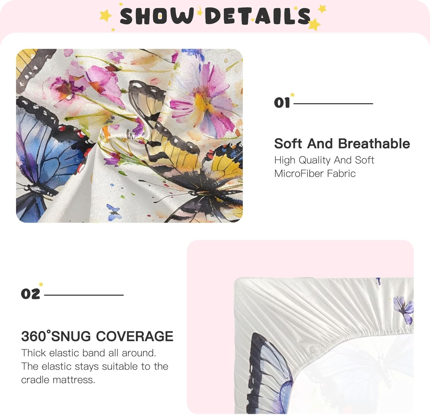 Adorned with a beautiful watercolor butterfly pattern, this crib sheet brings a touch of whimsy and charm to any nursery. Itâs a delightful way to make your babyâs room feel magical and personal.