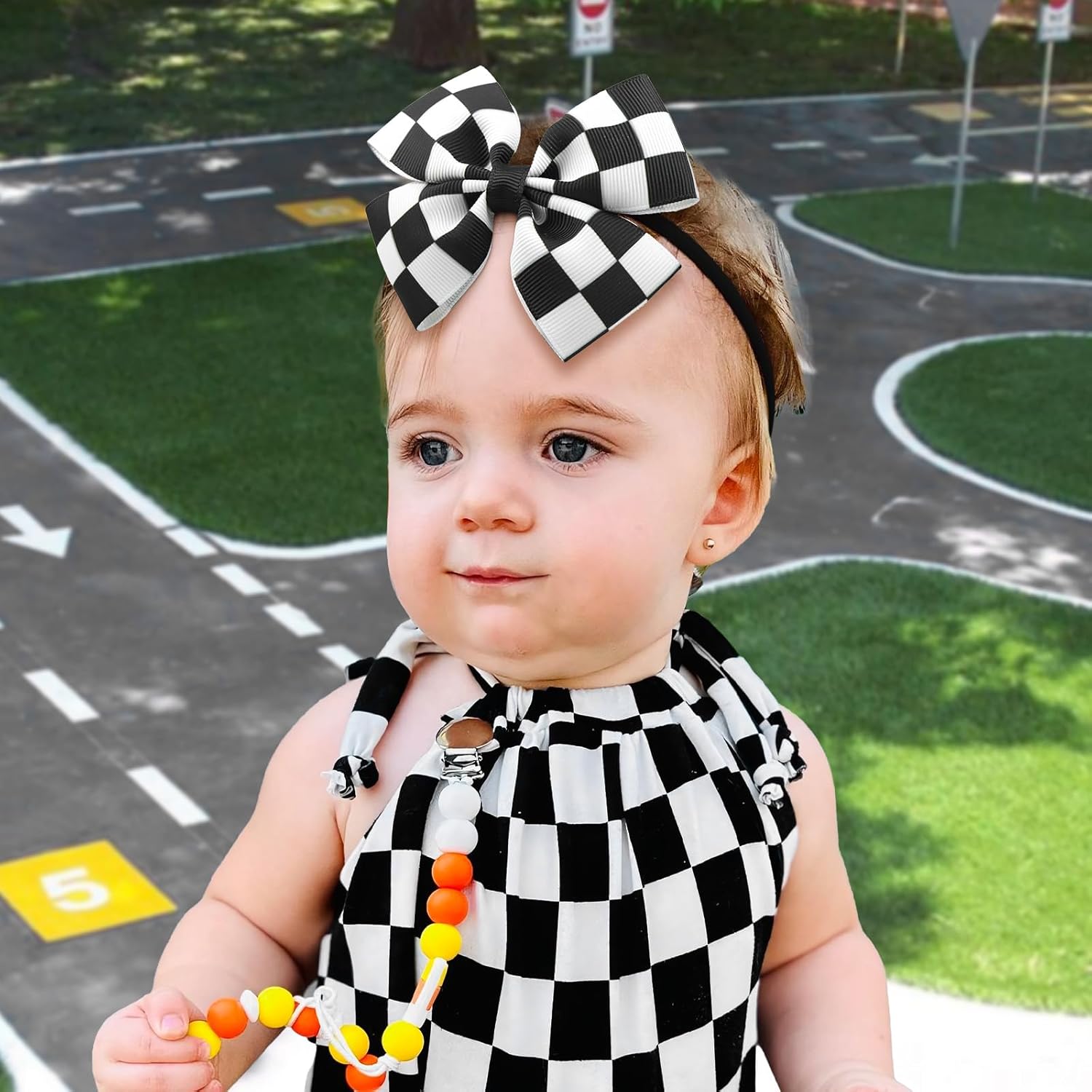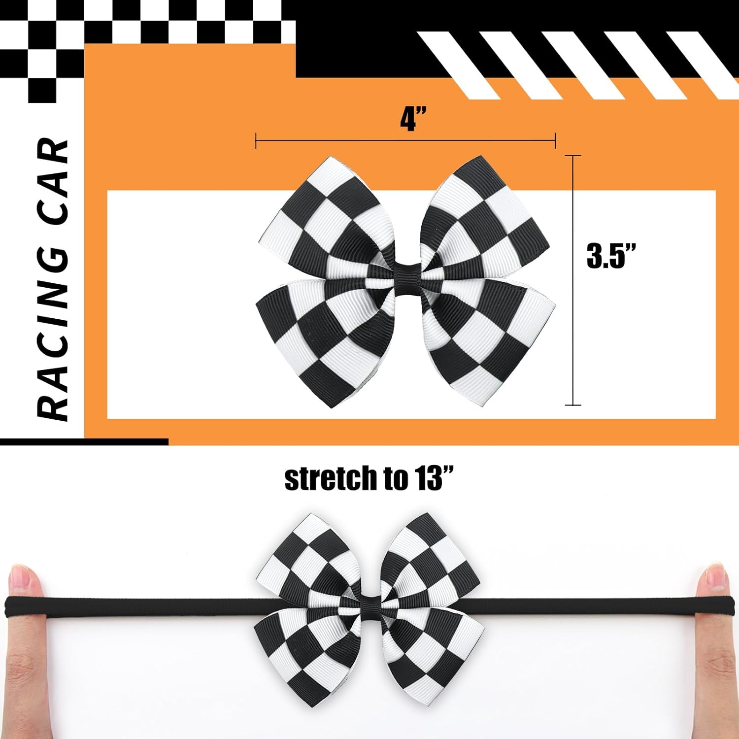Whether it's a race day, sports event, or themed party, this checkered flag headband is a versatile accessory that elevates any outfit. Designed with a one-size-fits-all elastic band, itâs suitable for newborns, infants, toddlers, and even preemies. The bow can be worn as a headband or hair clip, offering flexibility for both casual and event occasions. Featuring a unique racing theme, it adds flair to any look and makes for an unforgettable gift for any child who loves the thrill of speed.
