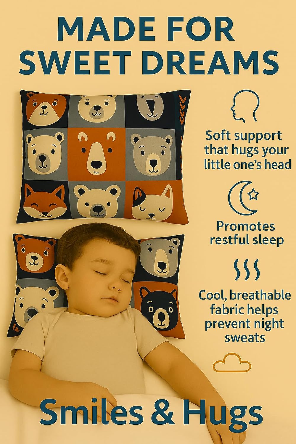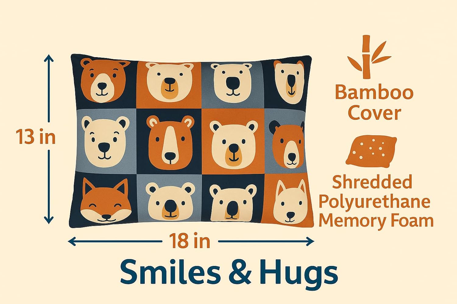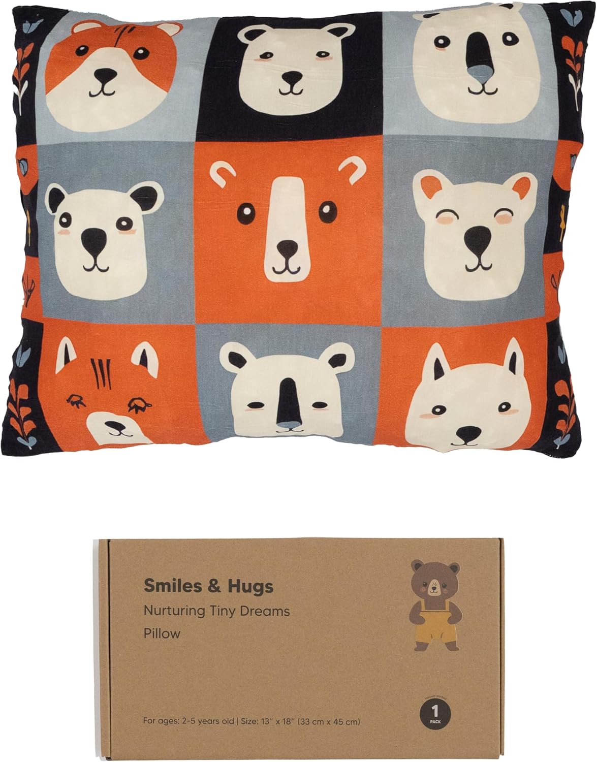 The Smiles & Hugs 13x18 Toddler Pillow is a must-have for every parent looking for comfort, style, and a touch of fun in their childâs sleep routine. Let your little one rest better with this breathable and safe pillow made for babies and toddlers.