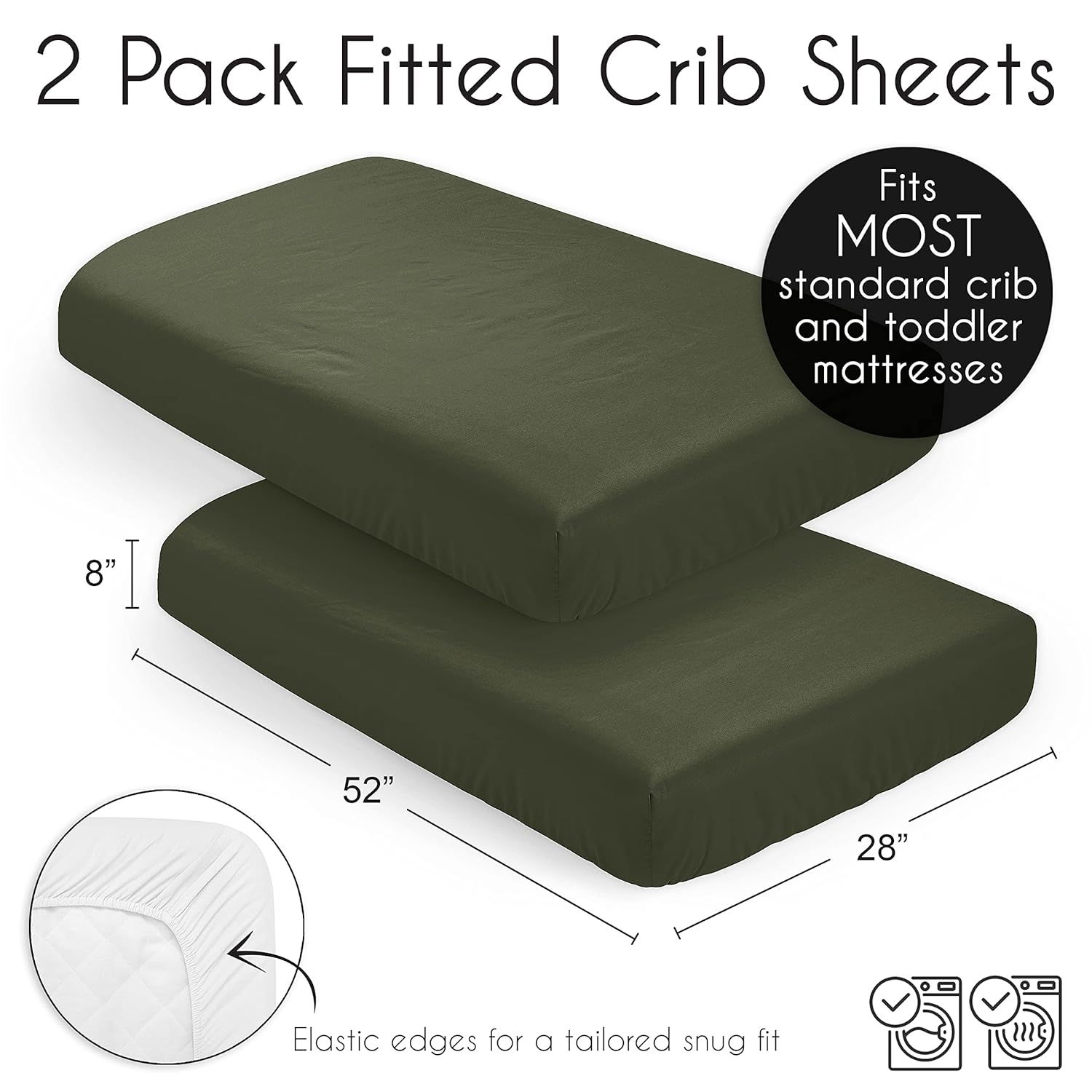The 2-pack crib sheet set from Sweet Jojo Designs is crafted with ultra-soft brushed microfiber, offering a gentle and safe sleeping surface for your little one. These sheets are not only durable but also incredibly cozy, making them ideal for babyâs restful nights. Their solid dark green Hunter Forest Olive color brings a sense of calm and natural beauty to any nursery, adding rustic charm and woodland elegance to the room.