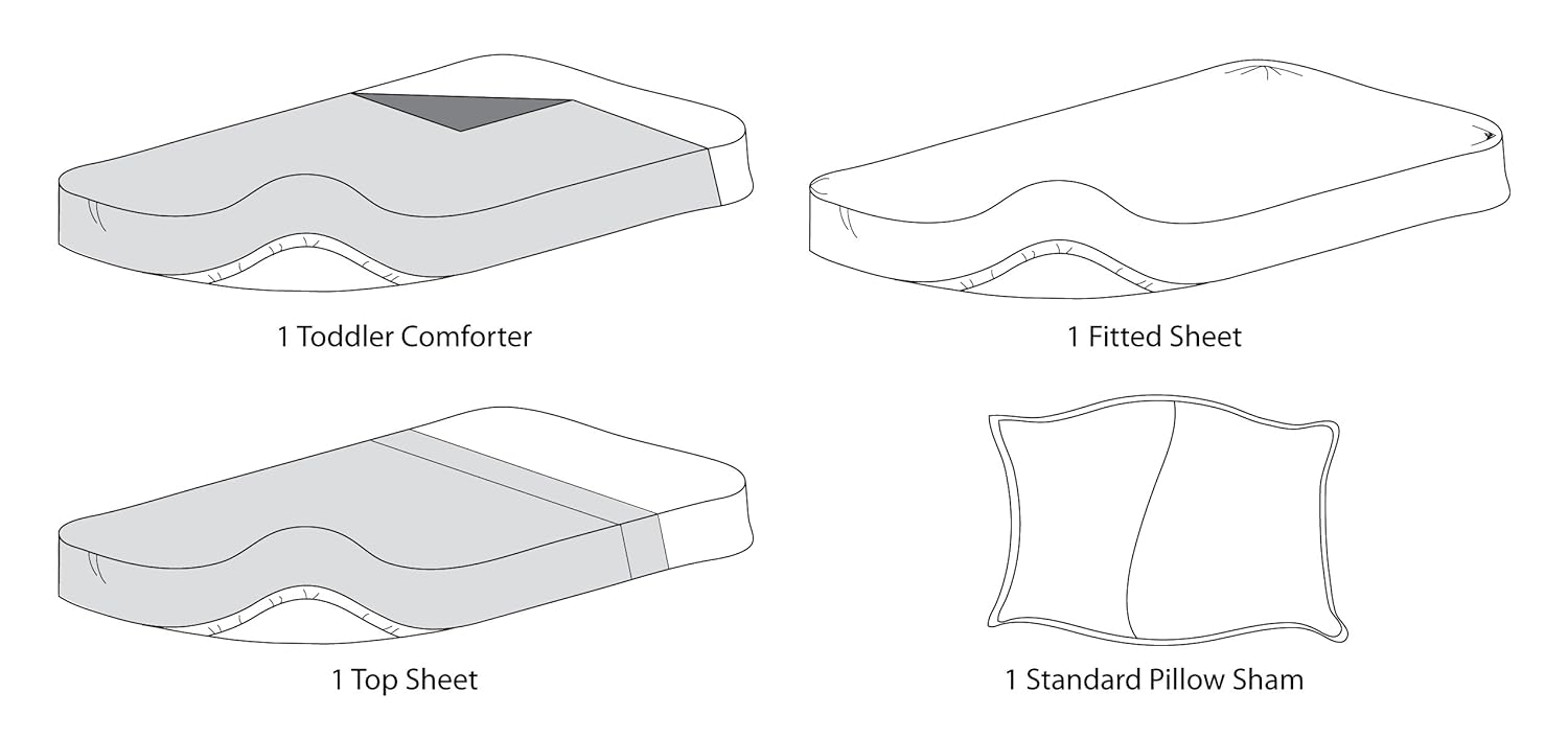 This 4-piece set includes a comforter, a top sheet with elastic for a secure fit, a fitted bottom sheet, and a standard pillow. All pieces are crafted to work together seamlessly, creating a safe and cozy sleeping environment thatâs both functional and adorable.