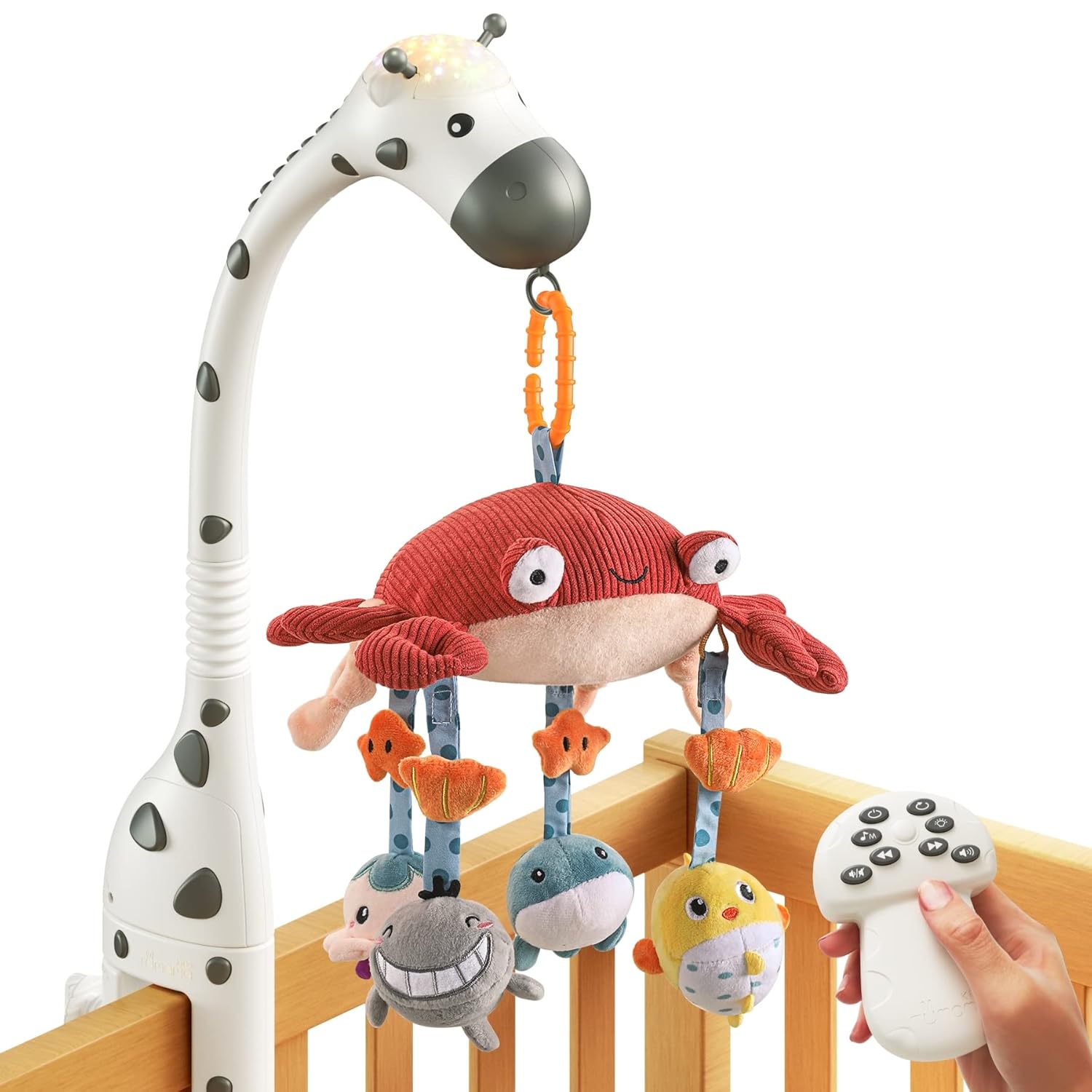 Featuring 12 lullabies and 12 white noise options, the TUMAMA Baby Crib Mobile helps create a peaceful environment for bedtime and naptime. The star projector casts twinkling lights across the ceiling or wall, transforming the nursery into a dreamy, starry night scene. This can be especially comforting for babies who enjoy the visual stimulation of the night sky.