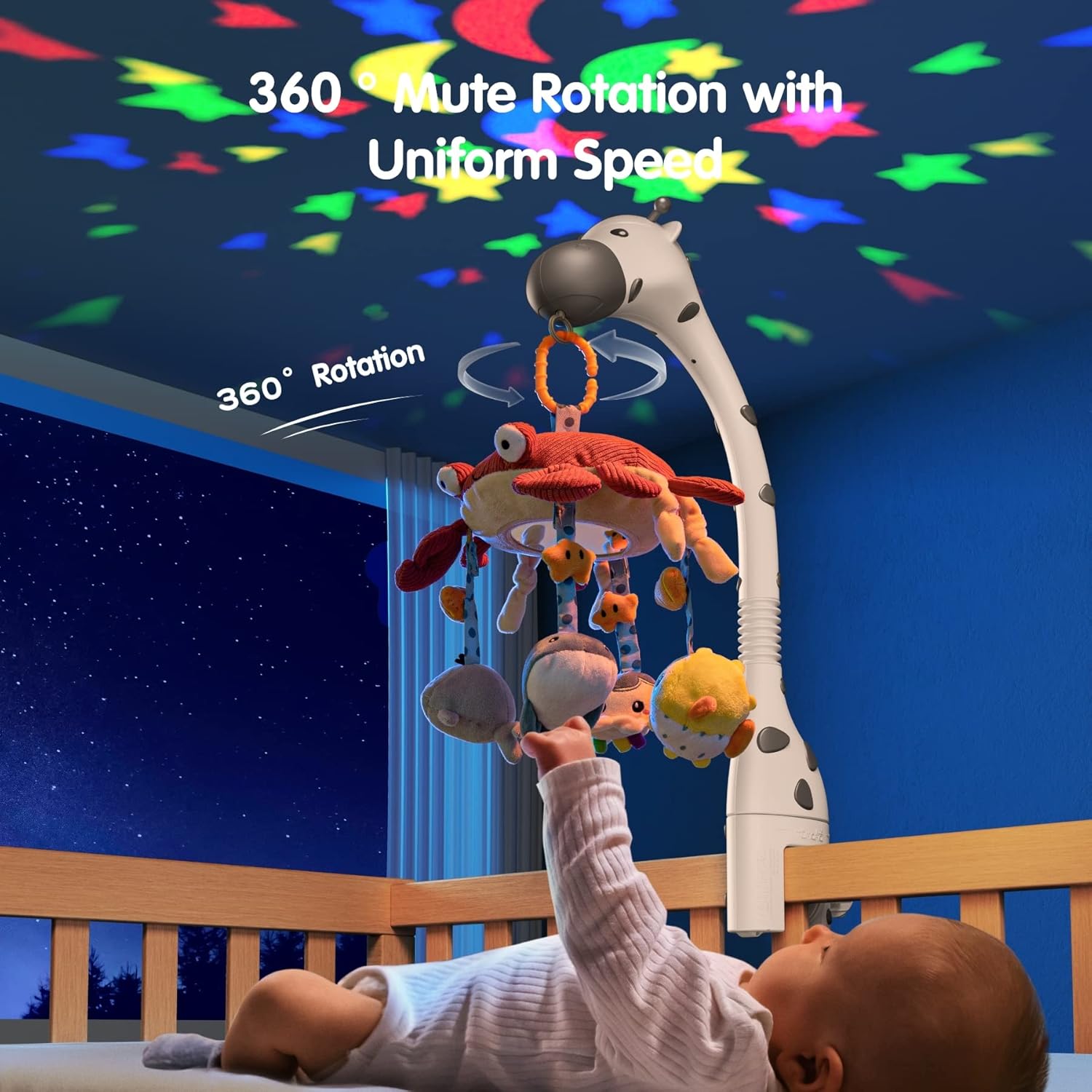 The TUMAMA Baby Crib Mobile is more than just a decoration â itâs a calming and stimulating companion designed to support your babyâs development and sleep routines. Combining music, white noise, and a star projector, this multifunction toy offers a soothing night-time experience with a touch of magic. Whether your little one needs a lullaby to fall asleep or a gentle glow to feel safe, this mobile adapts to your babyâs needs perfectly.