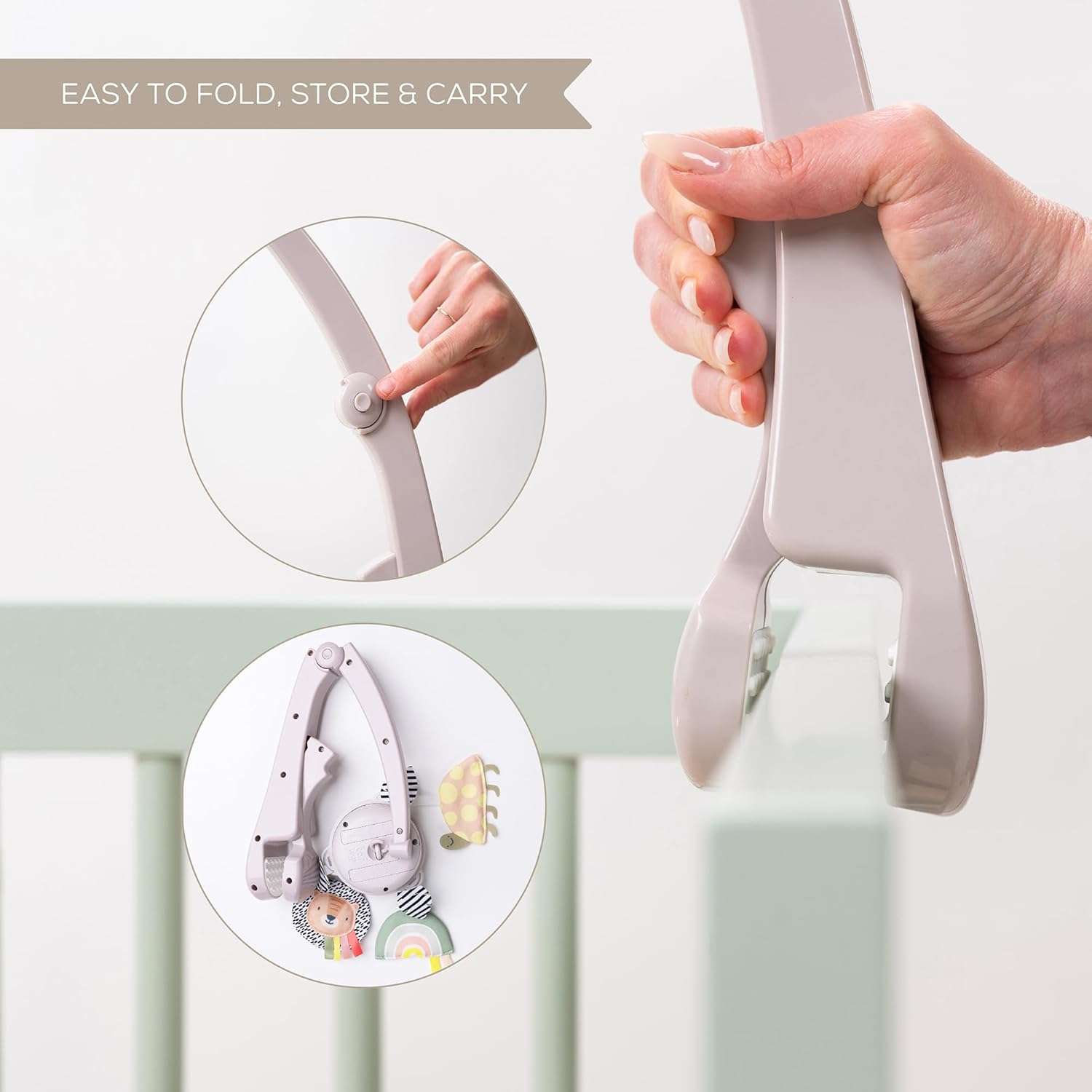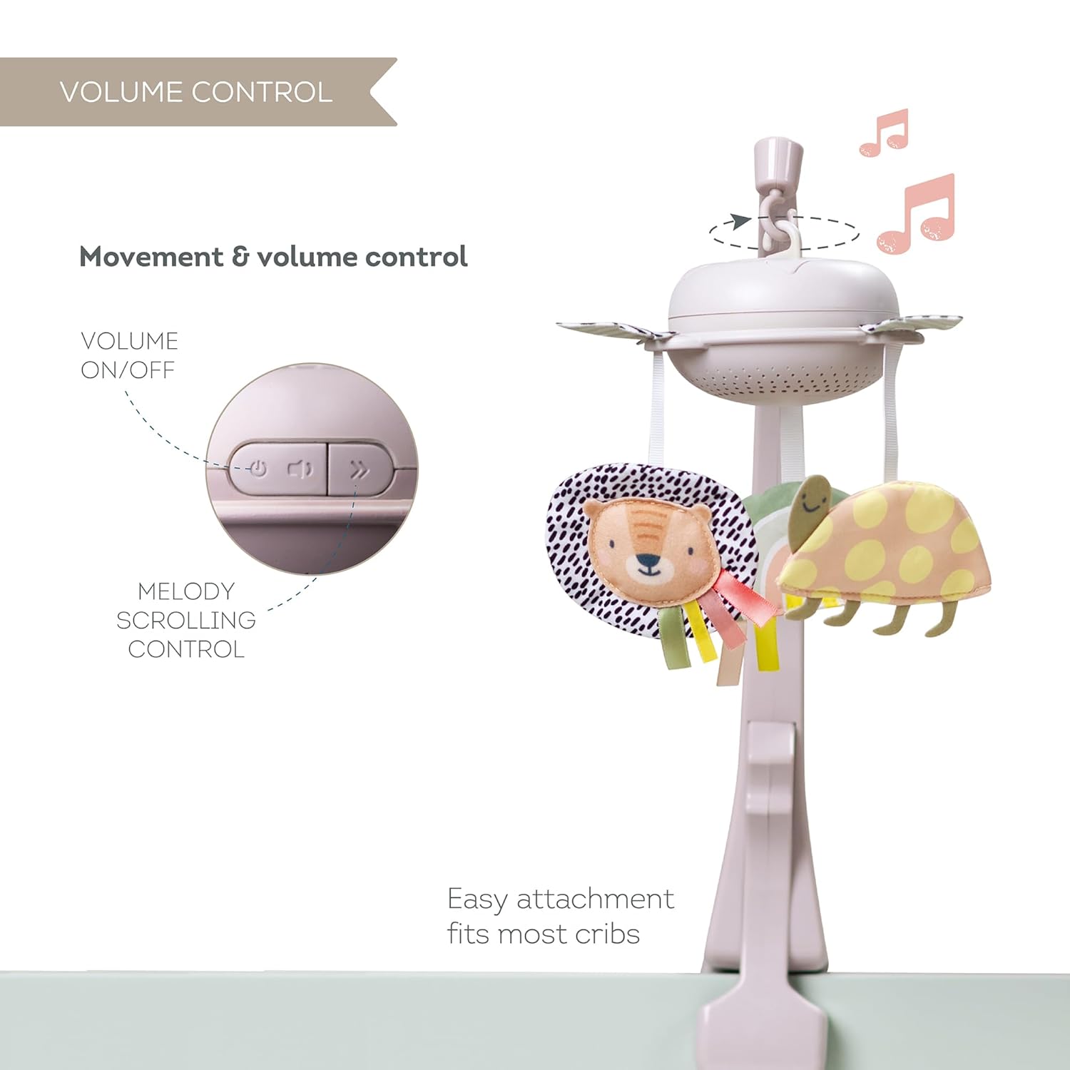 Featuring an easy-to-fold design, this mobile is portable for travel and can be effortlessly moved between cribs, bassinets, and even pack and plays. The versatile mounting options also allow it to be used on a changing table, providing added convenience and adaptability for parents on the go.