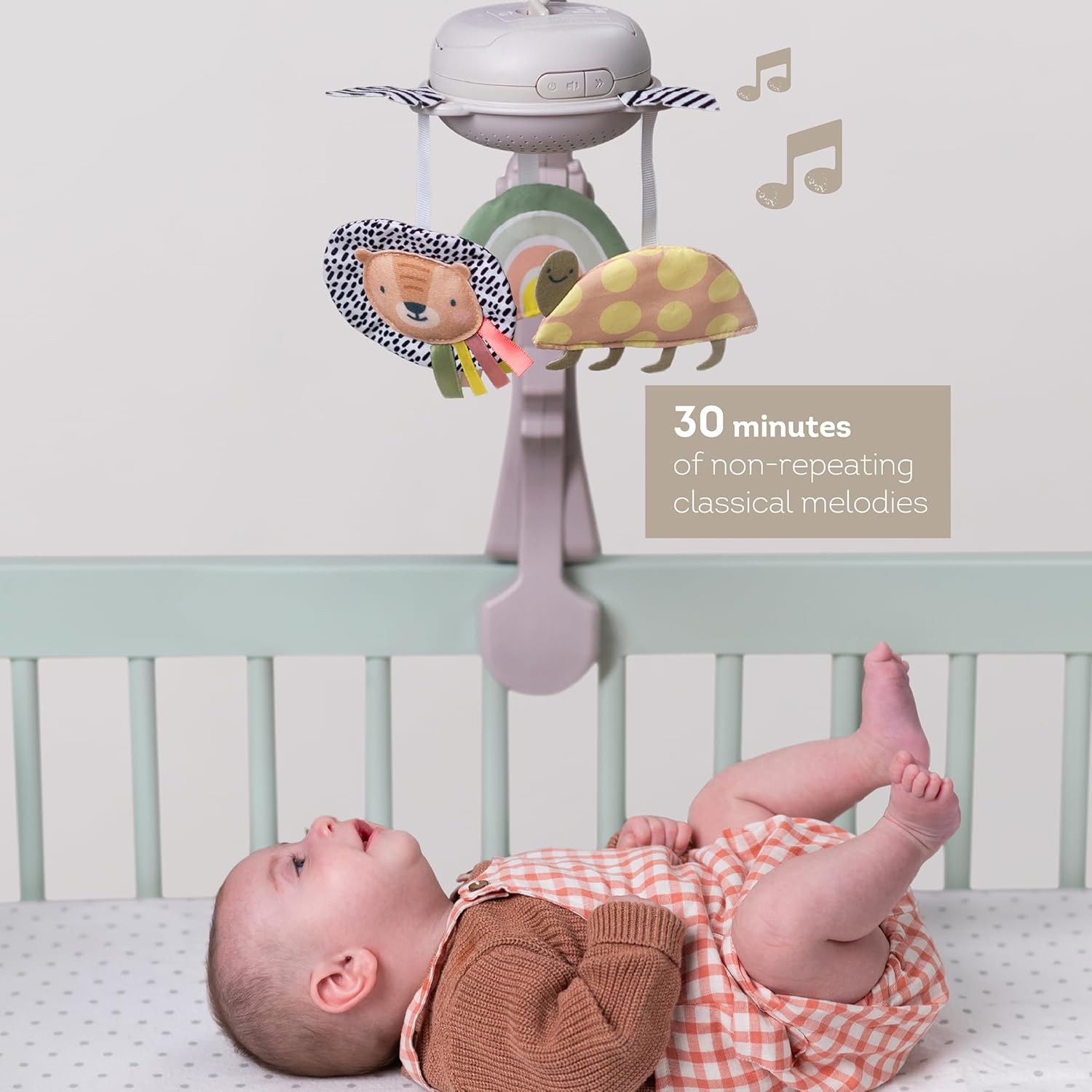 This innovative crib mobile is designed to create a calming environment for your baby while gently stimulating their senses. With soothing melodies from classical composers like Mozart and Bach, it's built to support early learning and emotional development, offering a peaceful and enjoyable experience for your little one.