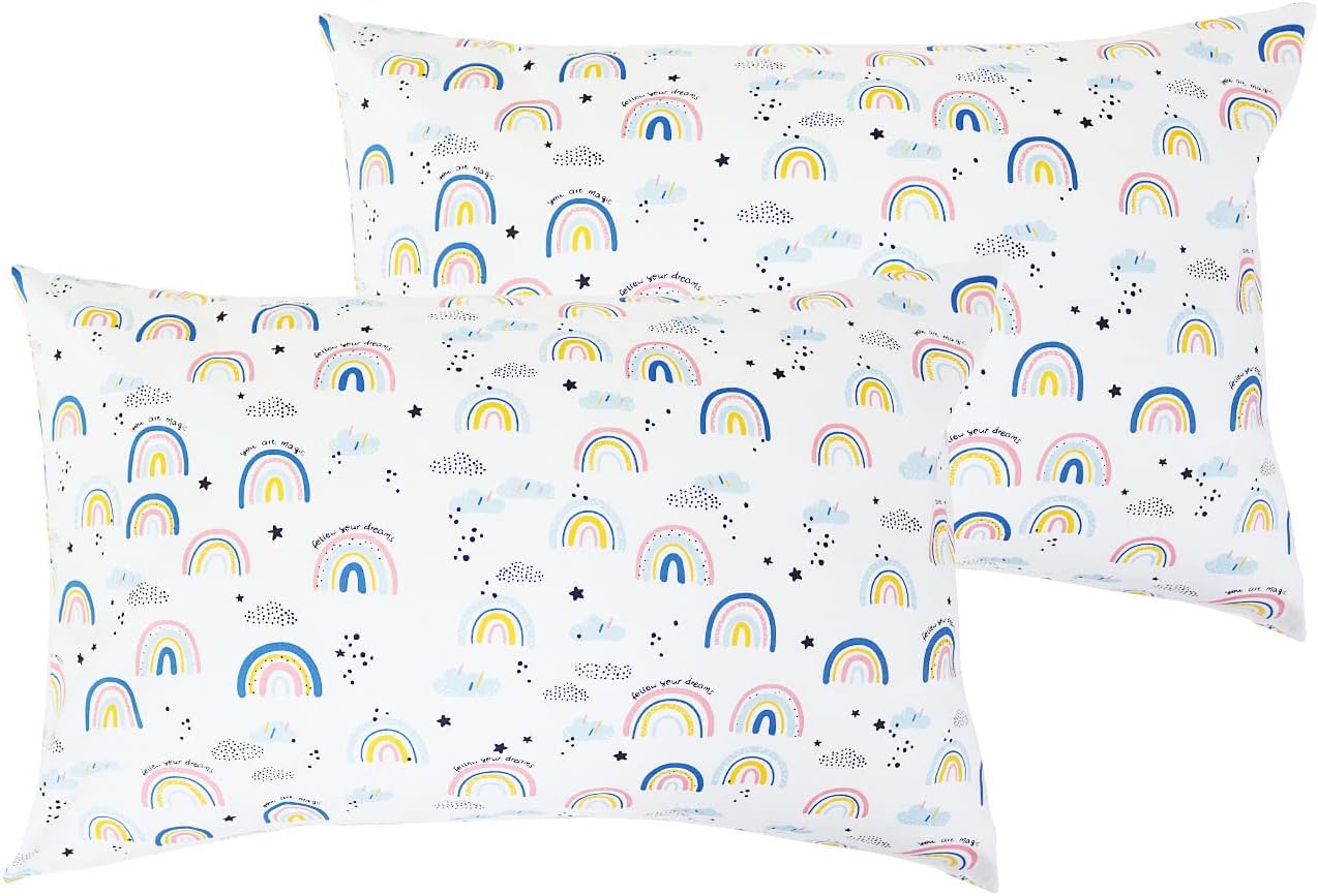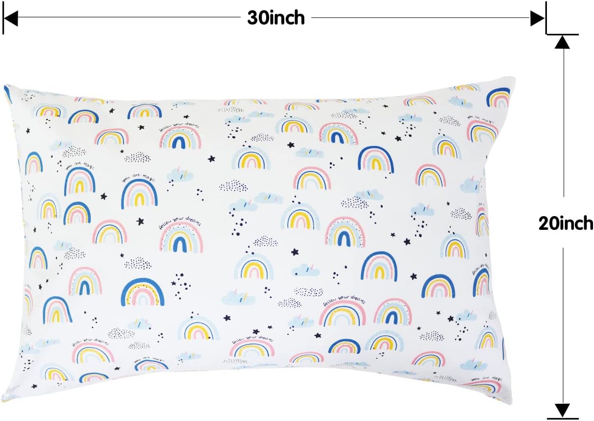 Adorned with a charming double-sided rainbow clouds design, these pillowcases are a fun and vibrant addition to any childâs living space. The playful prints are sure to captivate your little ones and brighten up their room.