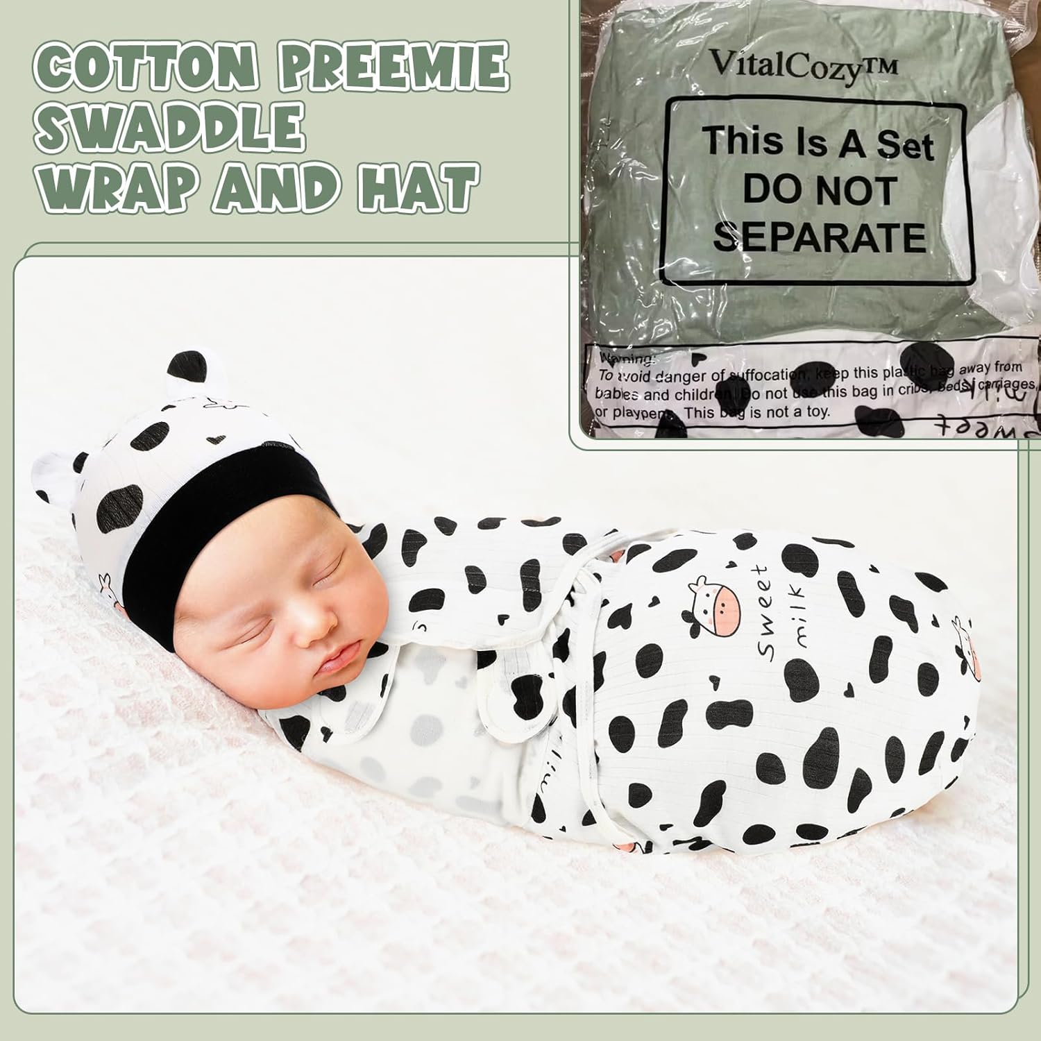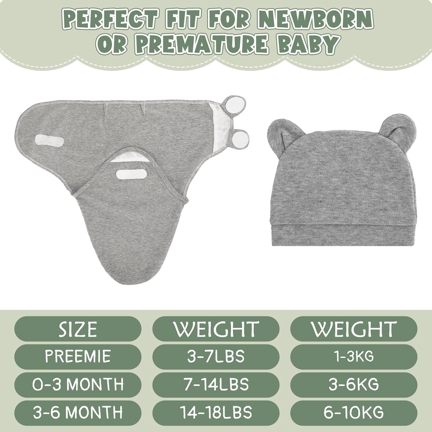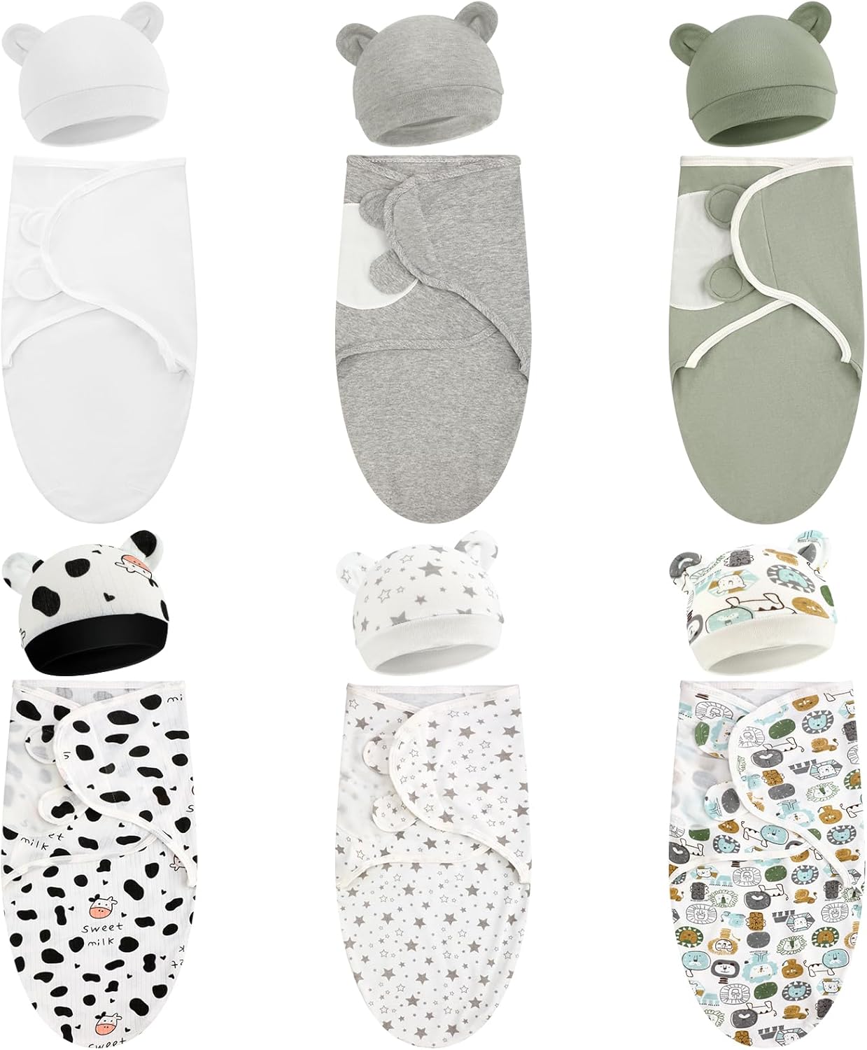 Gently swaddle your little one in comfort and security with this 6-pack set of soft, breathable cotton swaddles. Designed to mimic the soothing feel of the womb, these swaddles help calm preemies and reduce startle reflex, offering a sense of safety during their most sensitive time. Each swaddle features a charming hat that matches the design, adding an extra layer of style and practicality. Whether for everyday use or special occasions like baby showers and registries, this set ensures you're always prepared.