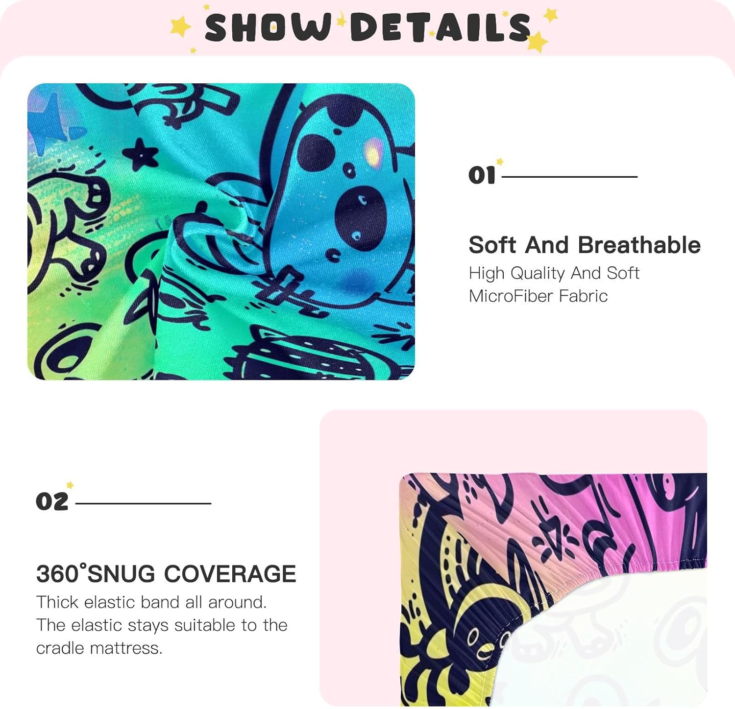 These adorable crib sheets are the ultimate choice for making your babyâs nursery both cozy and stylish. Designed with a soft elastic bandage around the edges, they ensure a secure and snug fit on standard and toddler mattresses. Made from ultra-soft microfiber, they offer a smooth and durable surface that's gentle on your little one's sensitive skin.