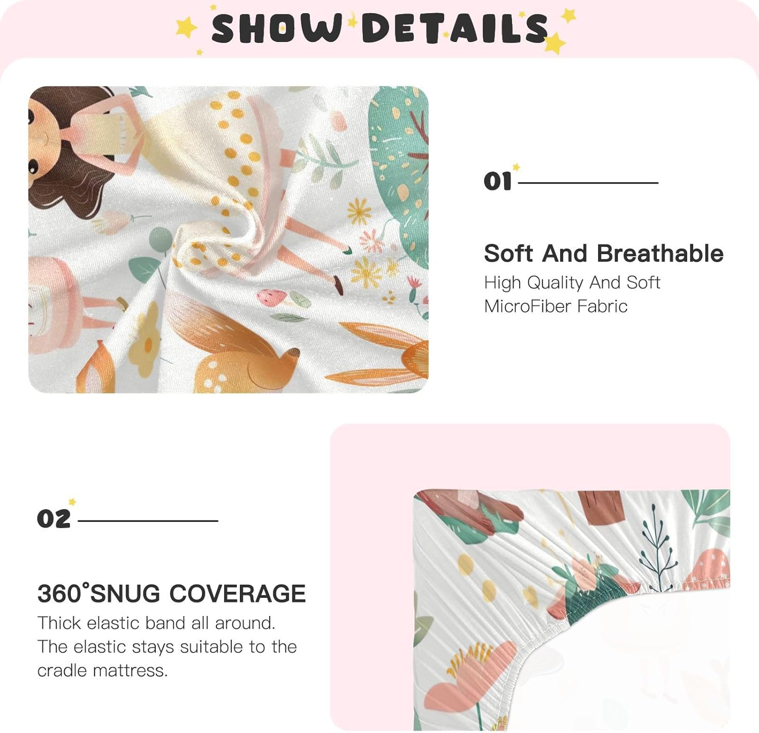 These Wajiw Cute Princess Crib Sheets are perfect for creating a magical and cozy atmosphere in your babyâs nursery. Designed with a snug elastic bandage around the sides, they offer a secure fit for both standard cribs and toddler beds. The ultra-soft microfiber fabric ensures a gentle and comfortable surface for your little one, while its durable construction can handle the wear and tear of daily use. Their breathable design helps maintain a cool sleep environment, especially during warmer nights, so your baby stays comfortable all through the night. With vibrant, colorfully printed patterns, these sheets add a whimsical touch to your nursery, making it feel like a fairy-tale setting. Plus, they are easy to clean and machine washable, ensuring long-lasting use without losing their color or style.
