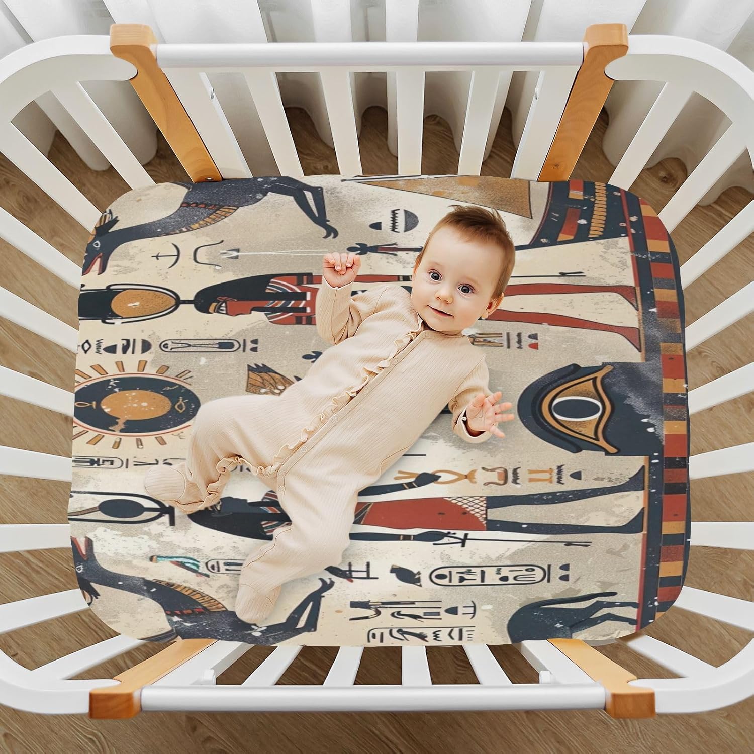 Bring the charm of Egyptian figures to your babyâs room with Wajiwâs soft and breathable crib sheets that offer comfort, durability, and a stylish design.