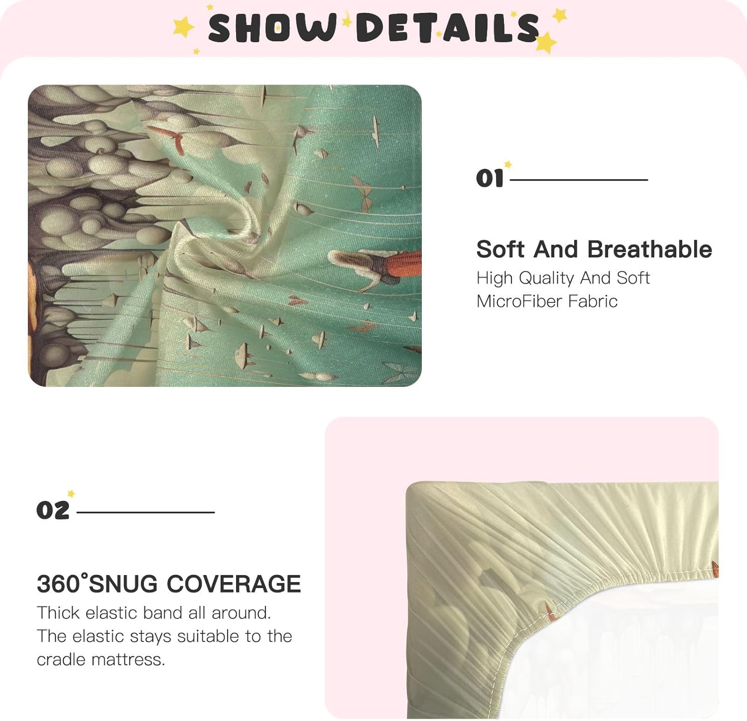 These crib sheets are made from ultra-soft microfiber that feels like a cloud against your babyâs skin, yet is built to last through countless changes and washes. The breathability ensures a cool, relaxing sleep, making it perfect for hot summer nights or any time of year.
