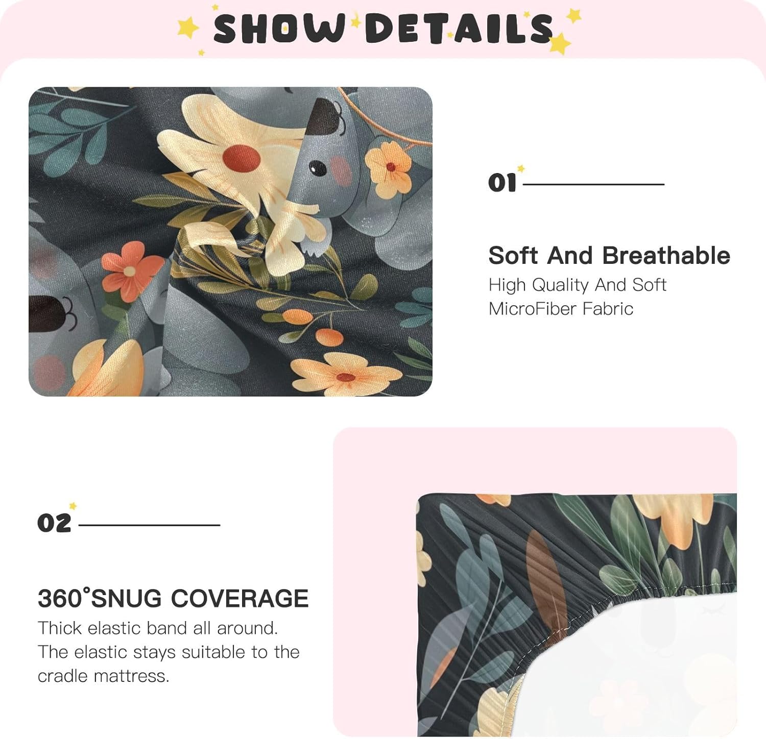 Crafted from ultra-soft microfiber, these sheets deliver a smooth, gentle touch that feels like a cloud against your baby's skin. The breathable fabric keeps your little one cool and comfortable, ensuring a restful night's sleep. Plus, the koala design adds a whimsical, sweet vibe to your baby's room, making it feel cozy and inviting.