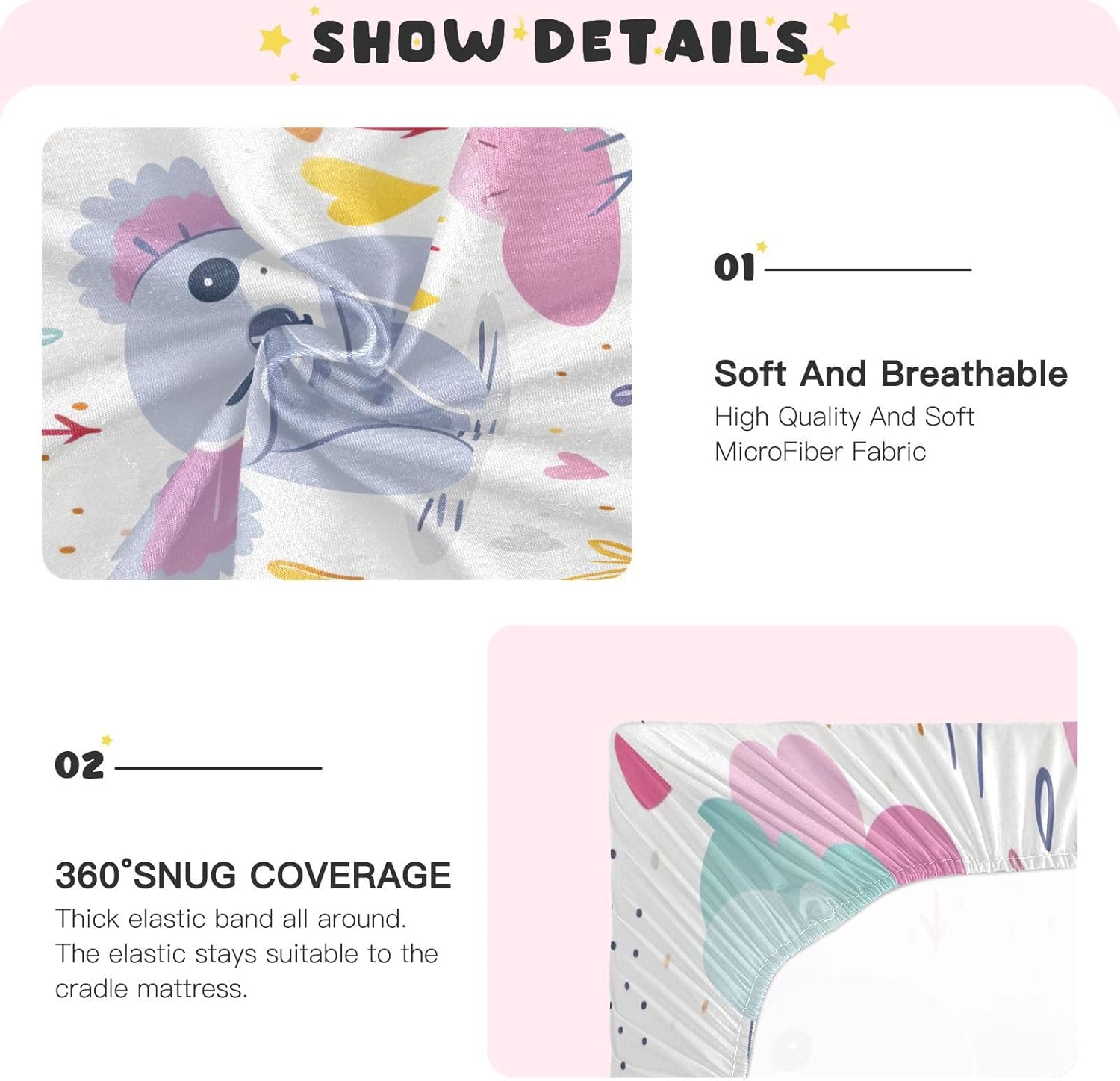 These crib sheets are designed with an ultra-soft microfiber fabric that offers your baby a dreamy and comfortable sleep environment. The breathable material helps keep the room cool, ensuring a cozy and restful night's sleep. The whimsical koala print adds a fun and cute touch to your nursery décor, making it a delightful place for your little one to grow.
