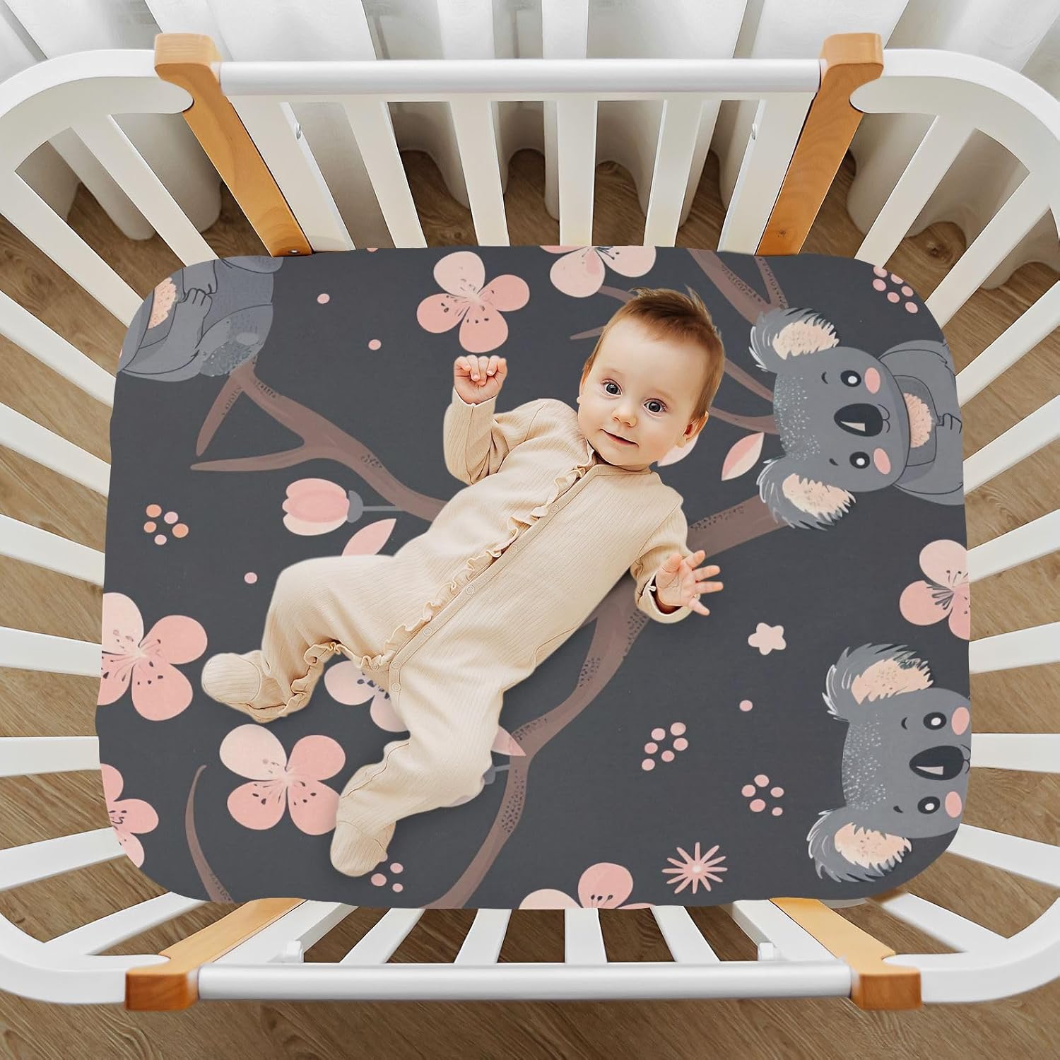 Designed to bring comfort and charm to your baby's room, these crib sheets are a must-have for any nursery. Made from ultra-soft microfiber fabric, they offer a gentle, hypoallergenic touch that's ideal for your baby's sensitive skin. The breathable material ensures your little one stays cool and cozy, no matter the time of day or the season. Each sheet features a delightful koala pattern that adds a whimsical and playful touch to the space.