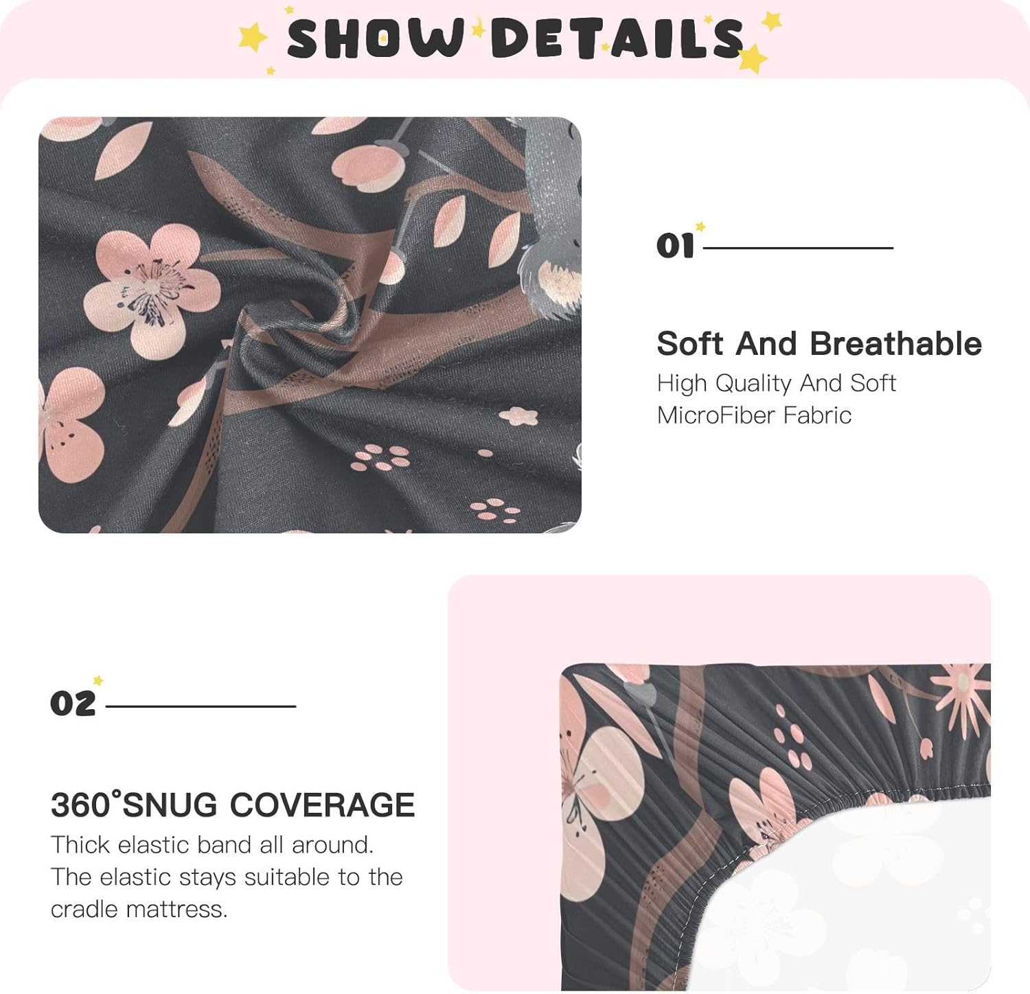 With a snug fit created by an elastic band around all sides, these crib sheets stay securely in place, preventing shifting and reducing the risk of your baby waking up. Perfect for both boys and girls, the universal size design ensures they fit standard crib and toddler mattress sizes, making them great for families with multiple children or those planning for future additions. Machine-washable and fade-resistant, they're easy to maintain and remain stylish through daily use.