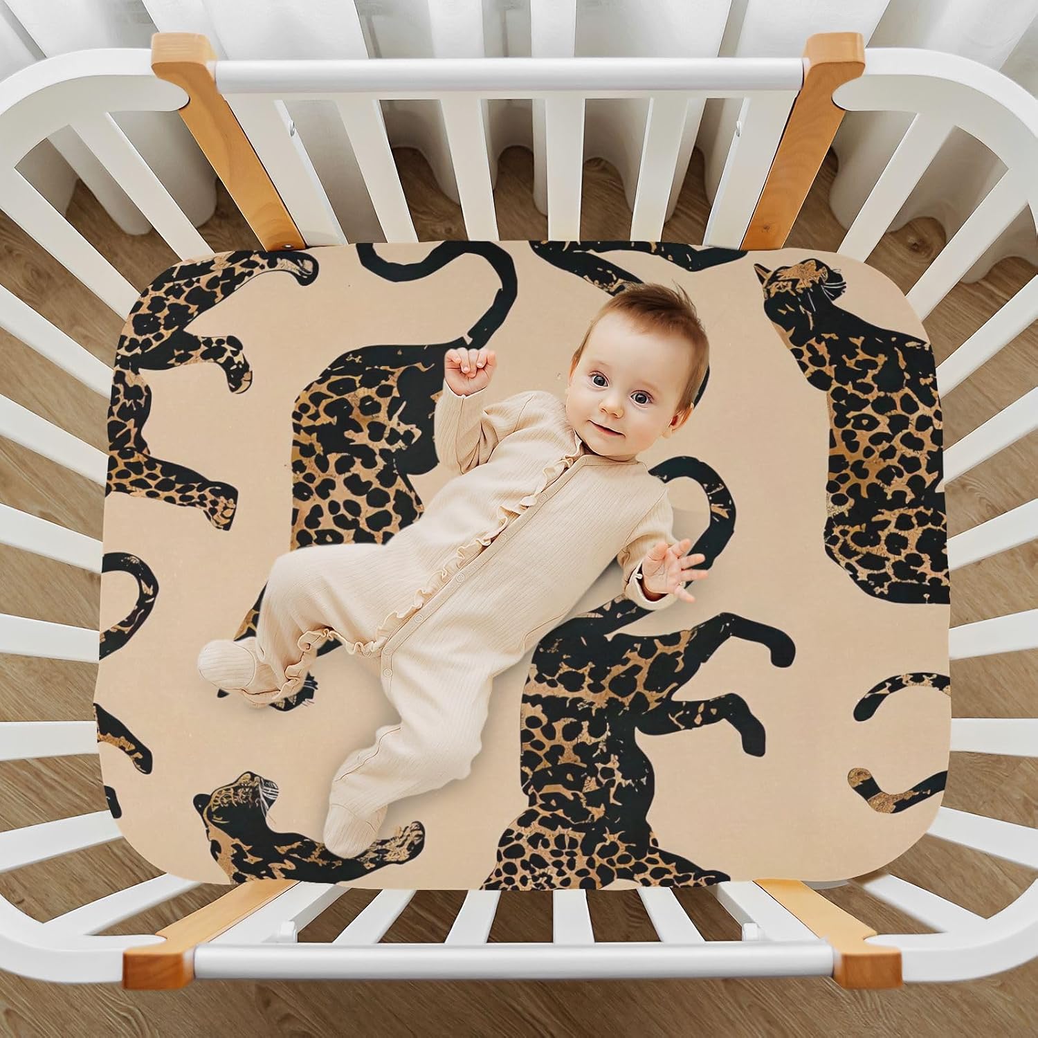These Wajiw Leopard Crib Sheets bring a touch of elegance and playfulness to your baby's room. Made from ultra-soft microfiber, they provide a smooth and gentle surface that's kind to your baby's sensitive skin. The elastic band around the sides ensures a snug fit, keeping the sheet securely in place during sleep or playtime.