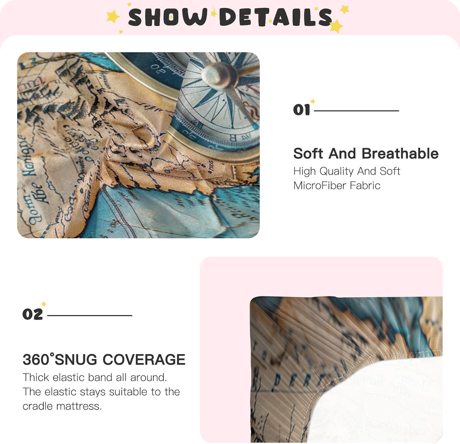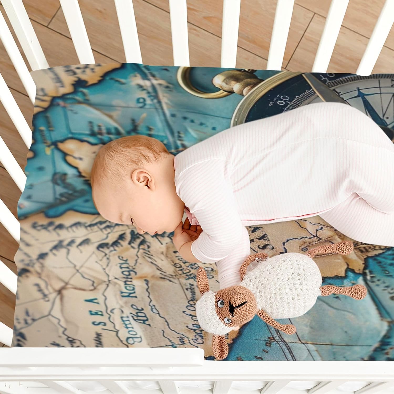 Bring a sense of wonder and style to your baby's room with these Wajiw Ocean Map Crib Sheets. Perfect for creating a cozy and vibrant nursery atmosphere, they feature soft microfiber fabric and an elastic band around all sides for a secure, snug fit on standard and toddler mattresses.