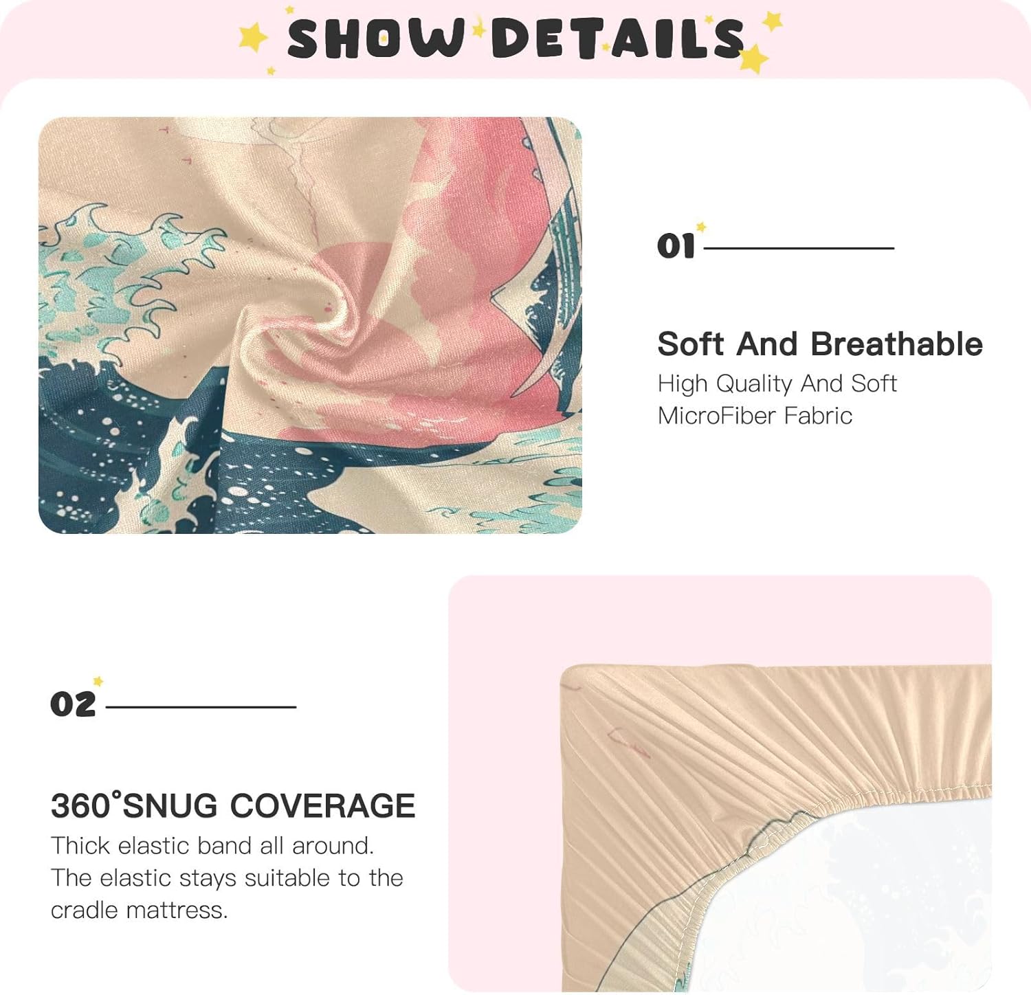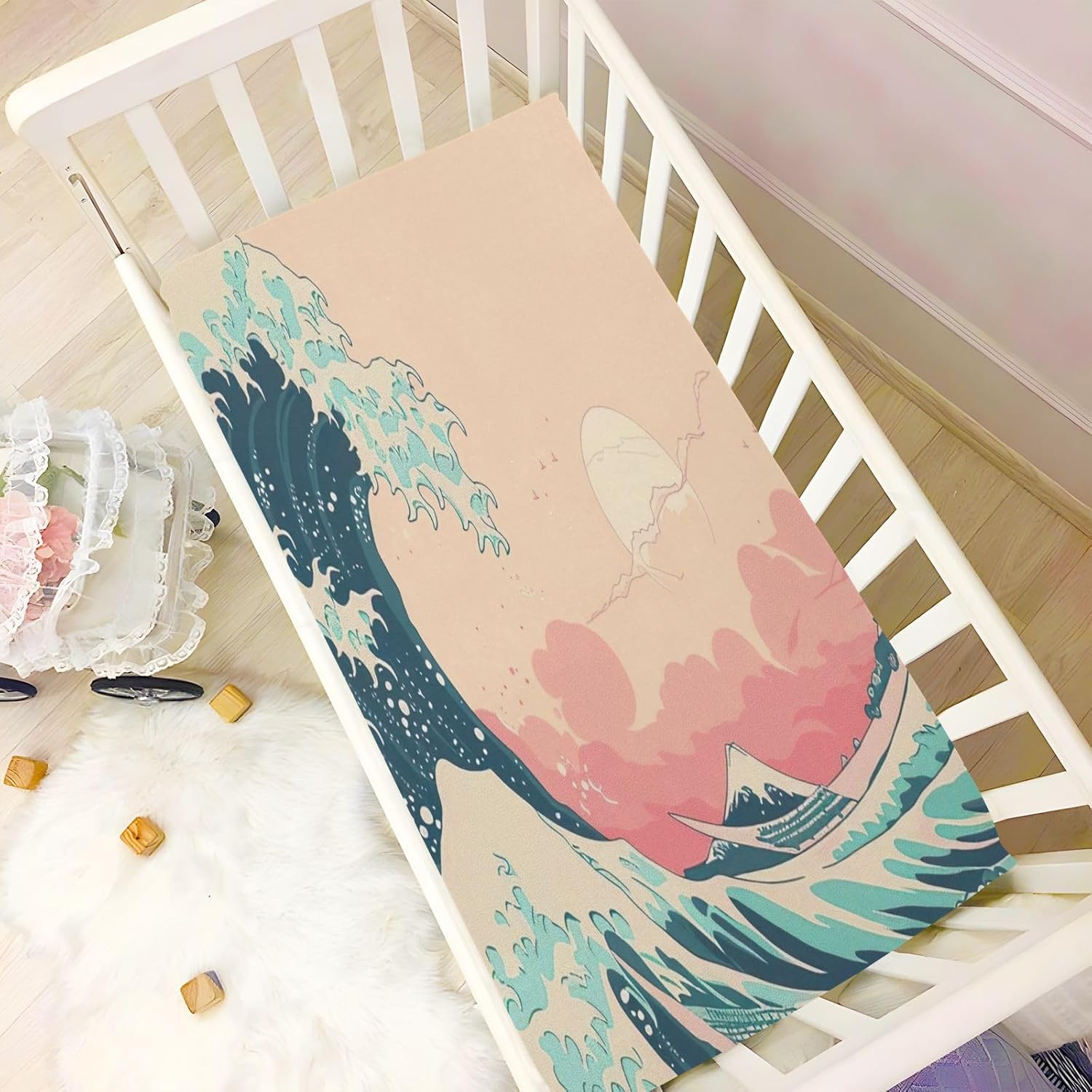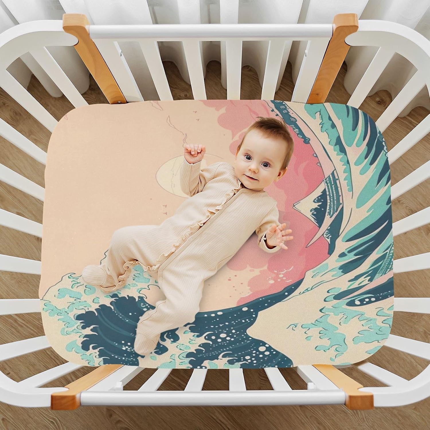 Wajiw Sea Wave Crib Sheets Soft Breathable Fitted