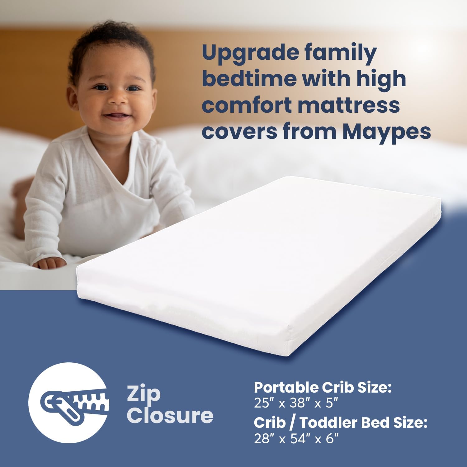 The Maypes Waterproof Crib Mattress Protector is a must-have for parents who want to keep their babyâs mattress clean and dry. Made from high-quality, water-resistant vinyl, it acts as a strong barrier against spills, nighttime leaks, and other messy situations that can happen during your little oneâs sleep.