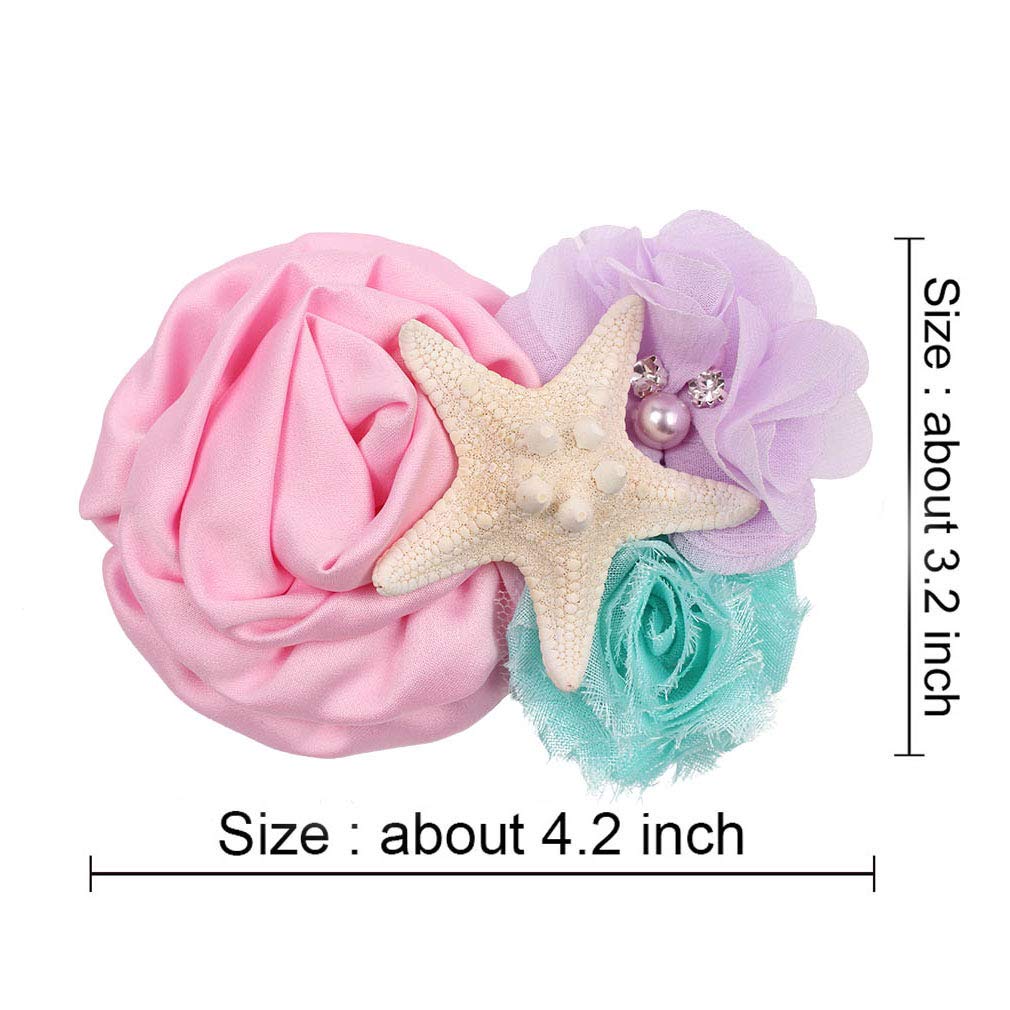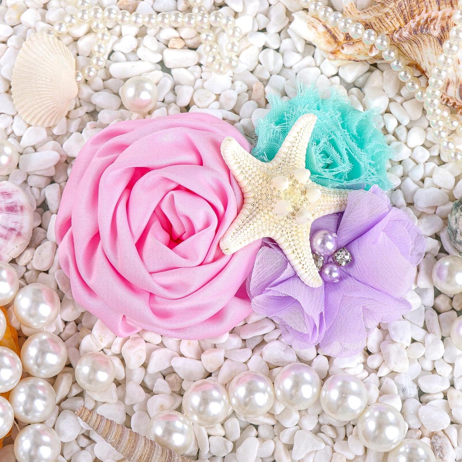 These adorable hair clips are a perfect blend of whimsy and elegance, designed with three handcrafted flowers and a realistic starfish. They make any little girl look like a magical mermaid princess, adding charm and style to her hair for special occasions. Whether it's a themed party, birthday celebration, or a simple photo session, these clips are sure to make her stand out with their playful and enchanting design.