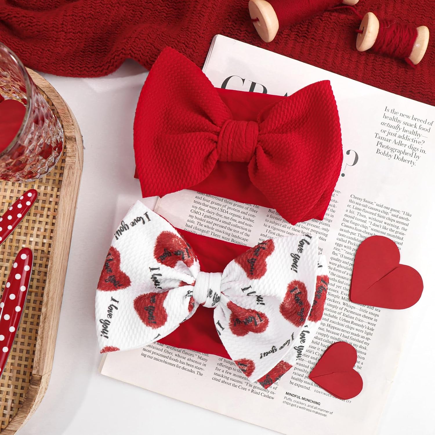 Featuring a red and pink color scheme with heart pattern embellishments, this Valentine bow headband adds a sweet and romantic flair to any outfit. It's the ideal gift for newborns, toddlers, and baby showers.